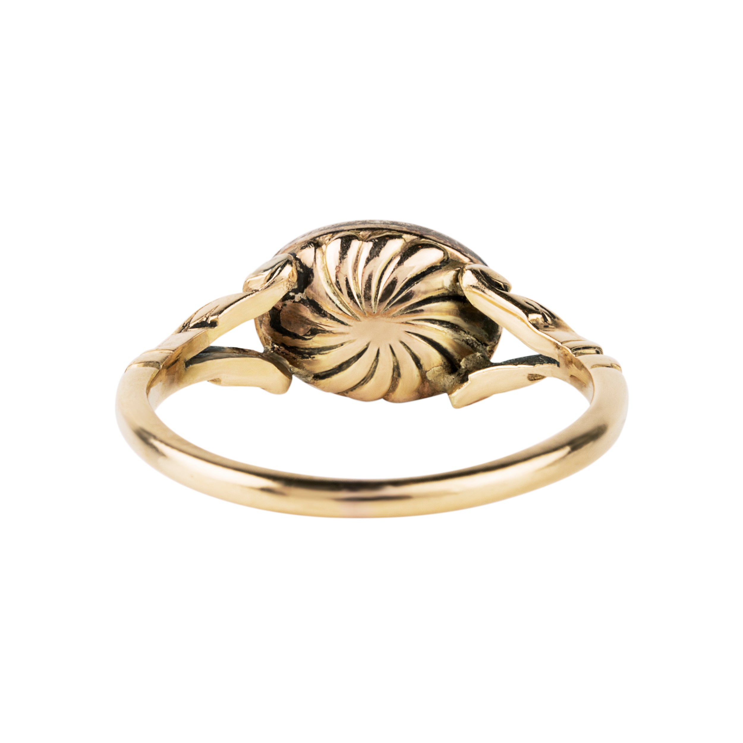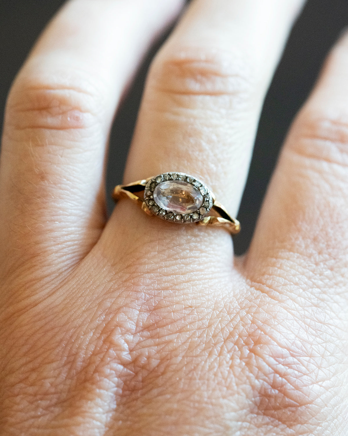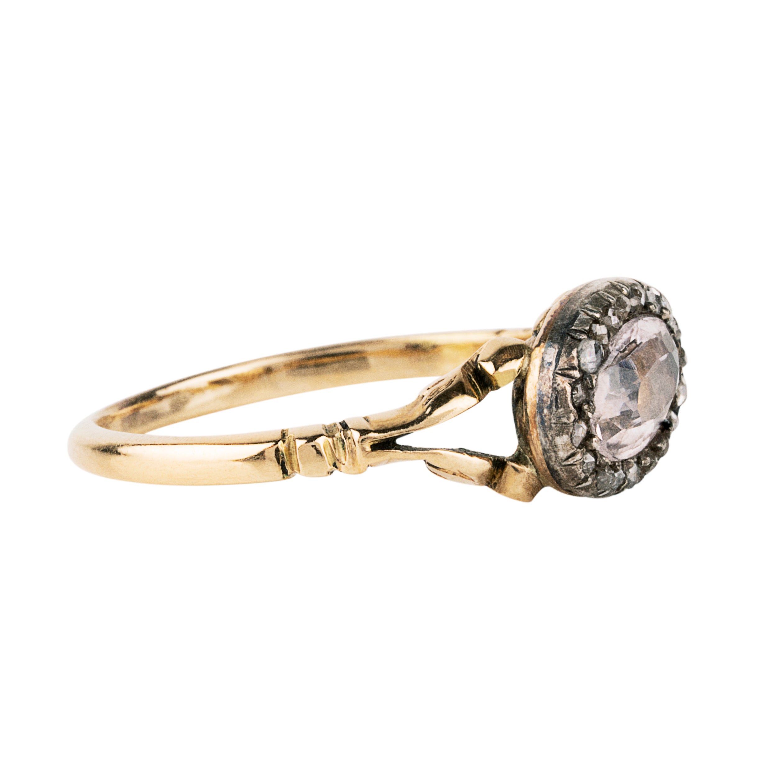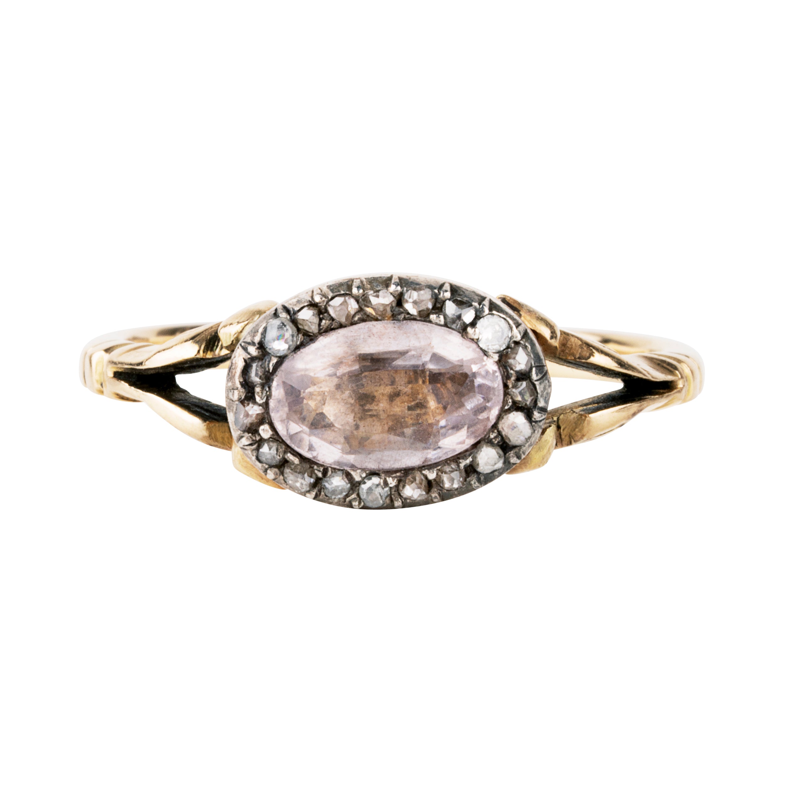 Georgian Era pale pink topaz and diamond ring, closed back, silver on gold. England. Circa 1820.