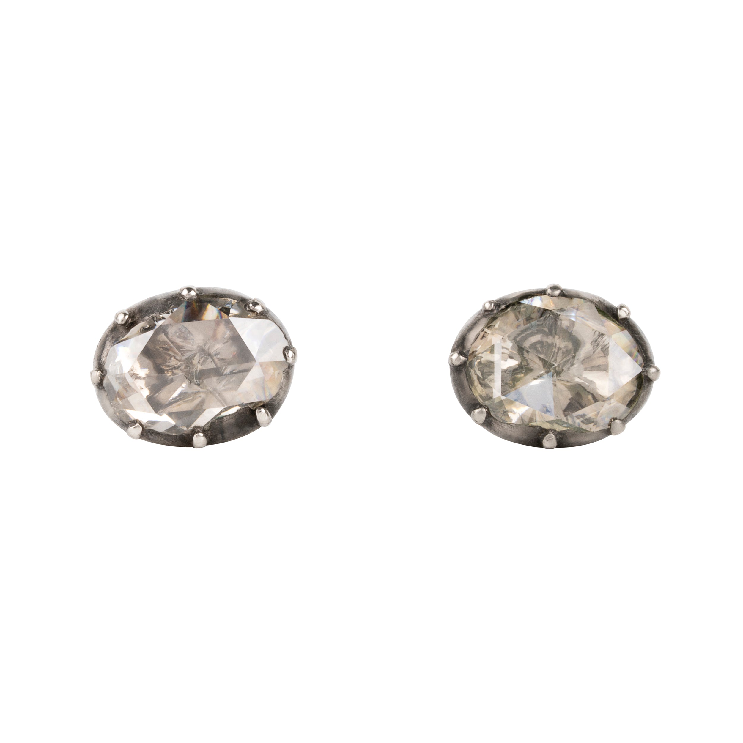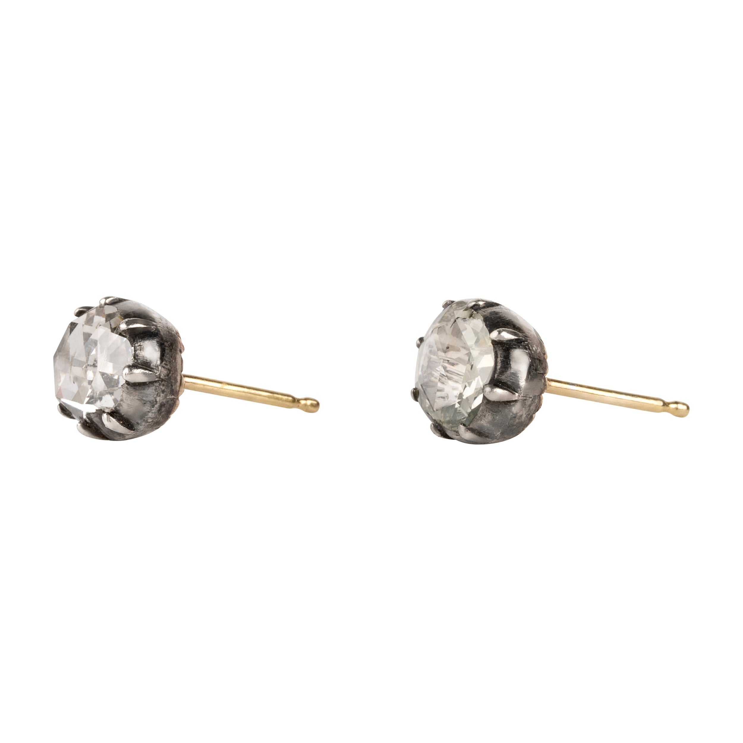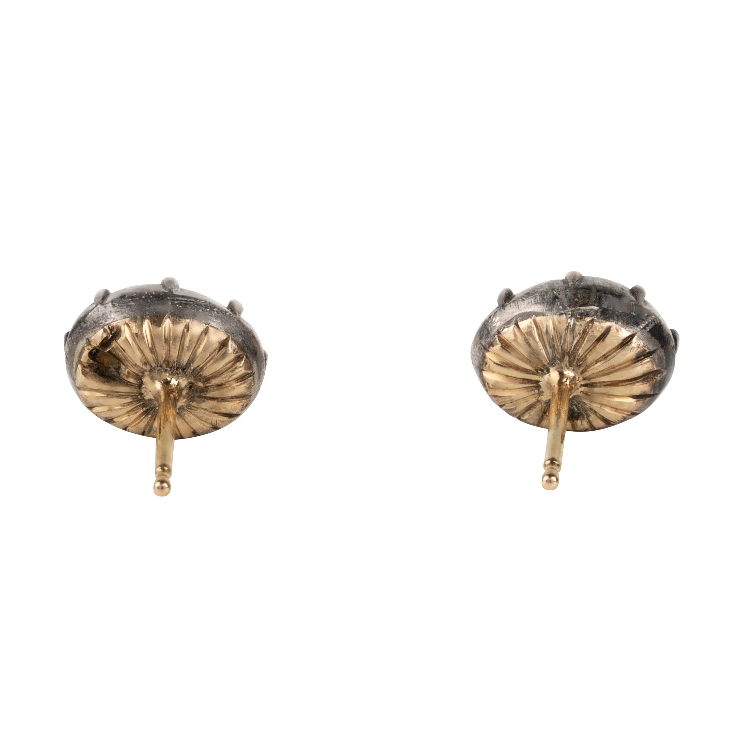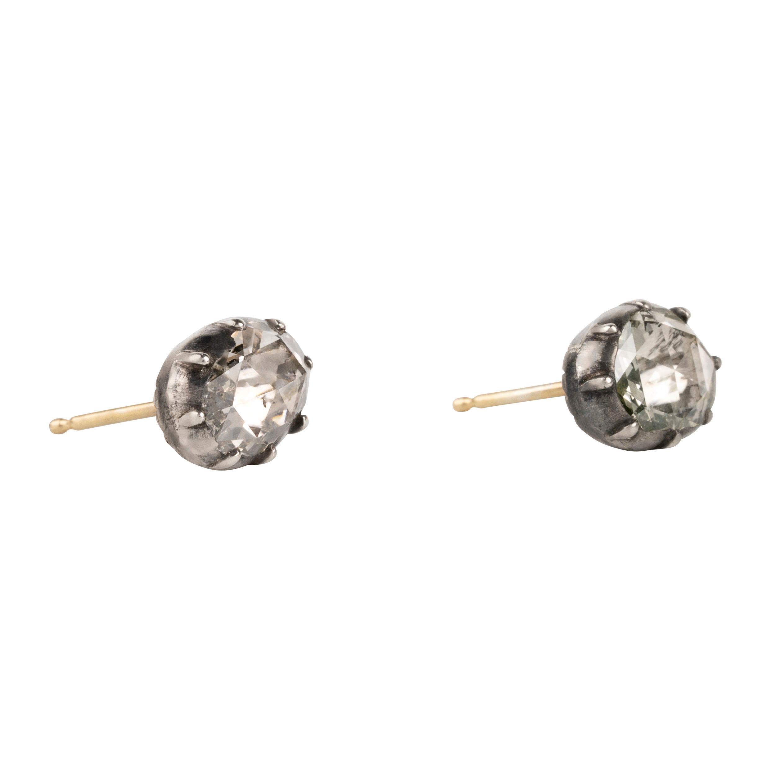 Georgian era rose cut diamond stud earrings. Foiled closed back cutaway settings, in silver topped 18k gold. Originally part of a brooch. Found in Paris. Circa 1820.
