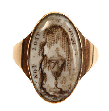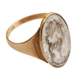 Georgian Era Sepia Painted Weeping Willow Mourning Ring