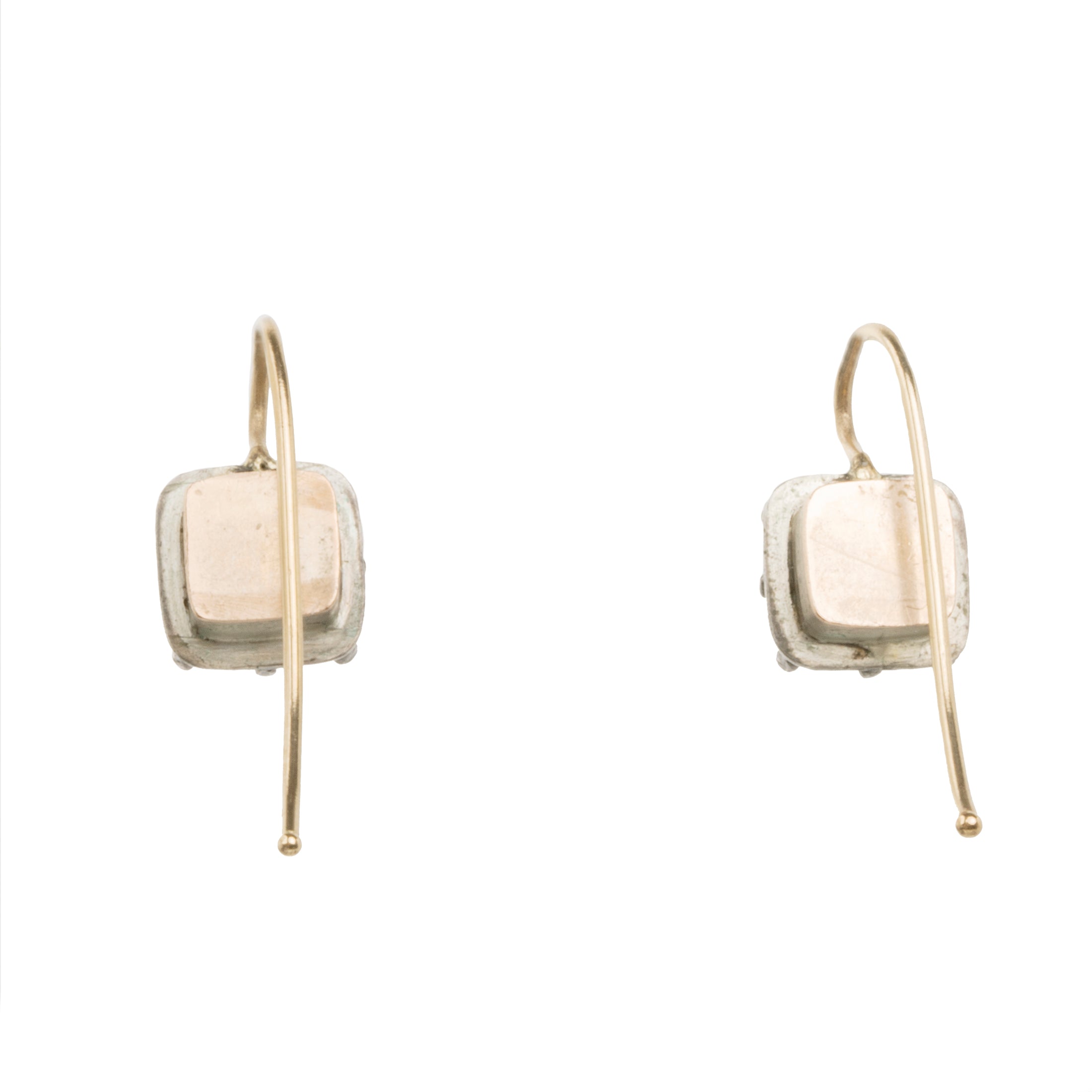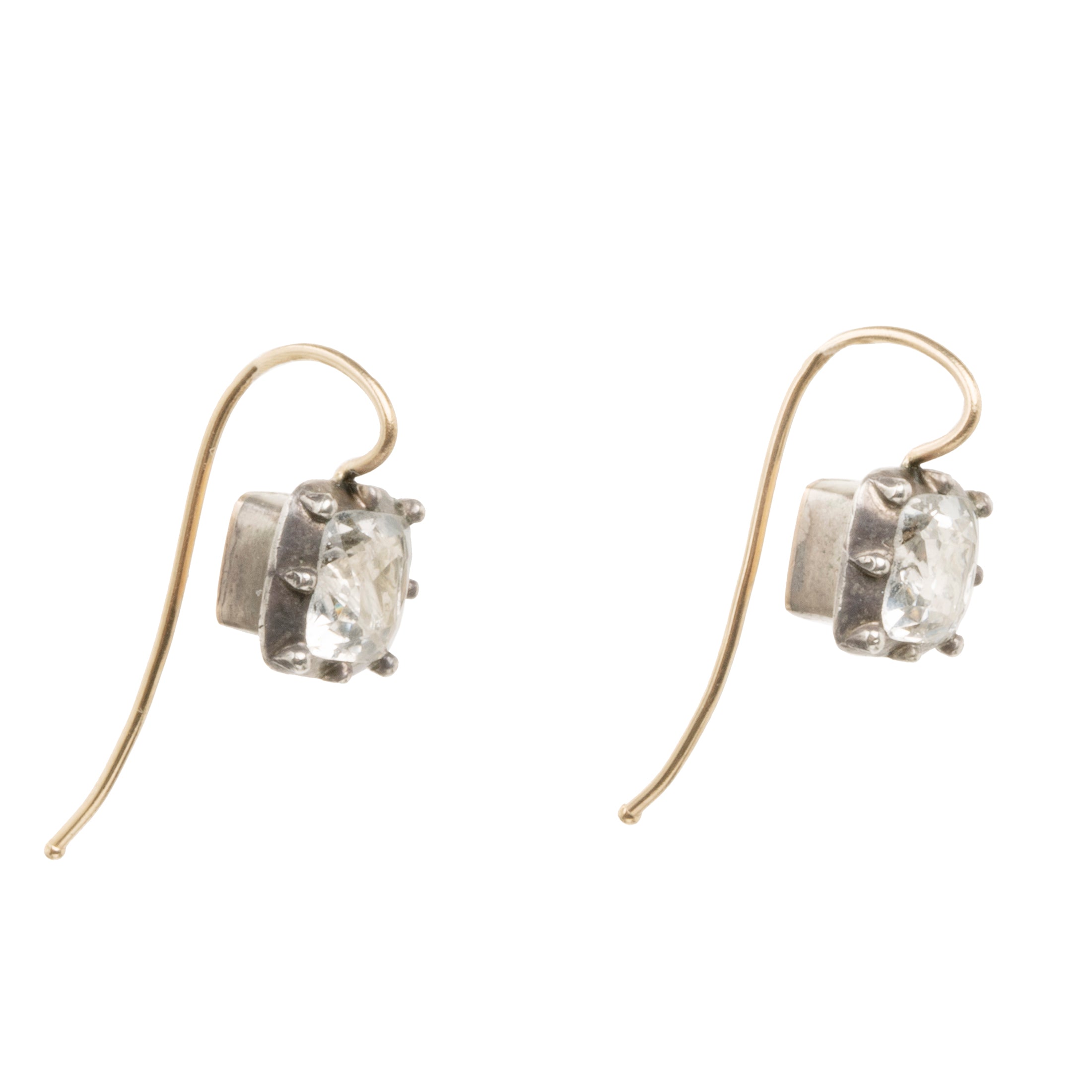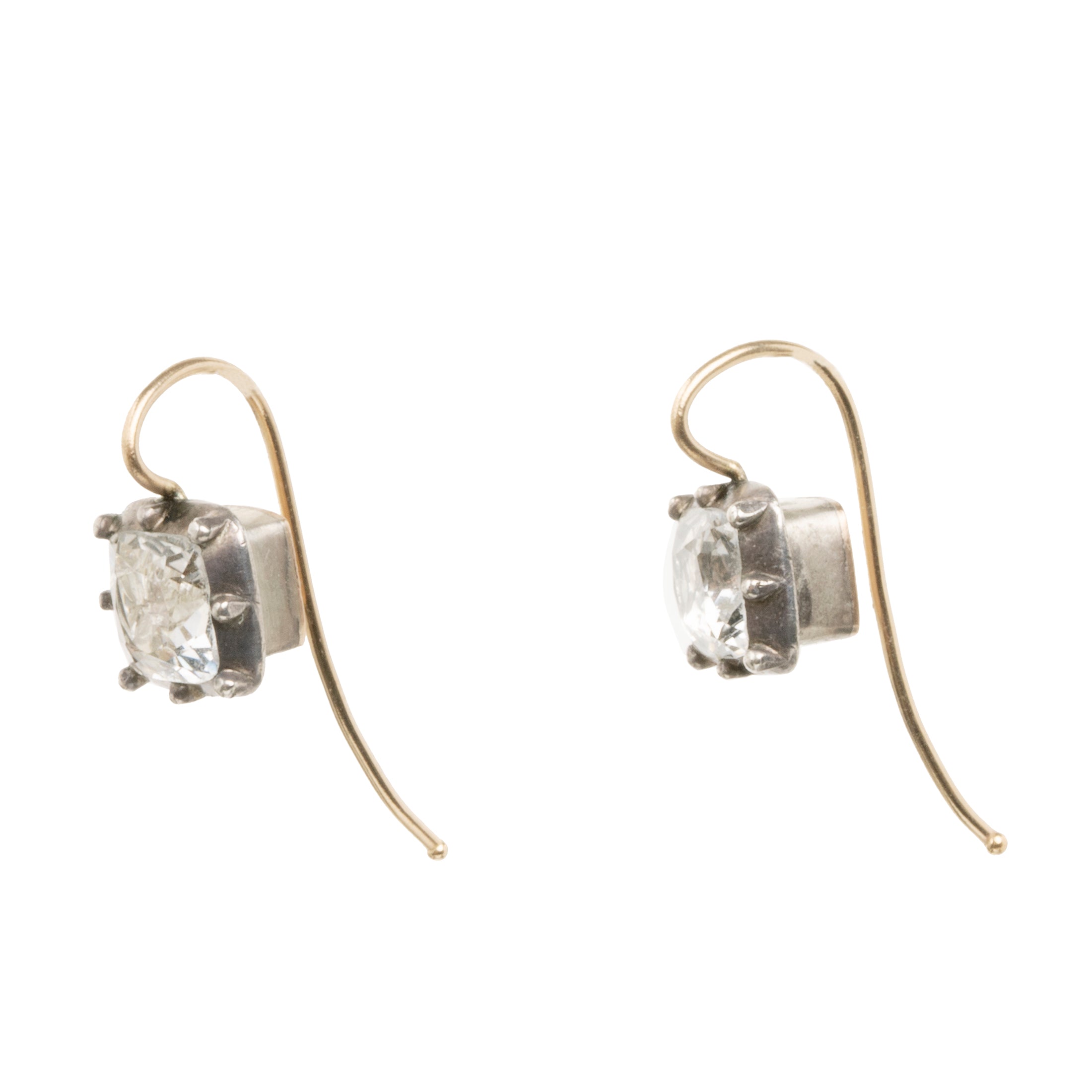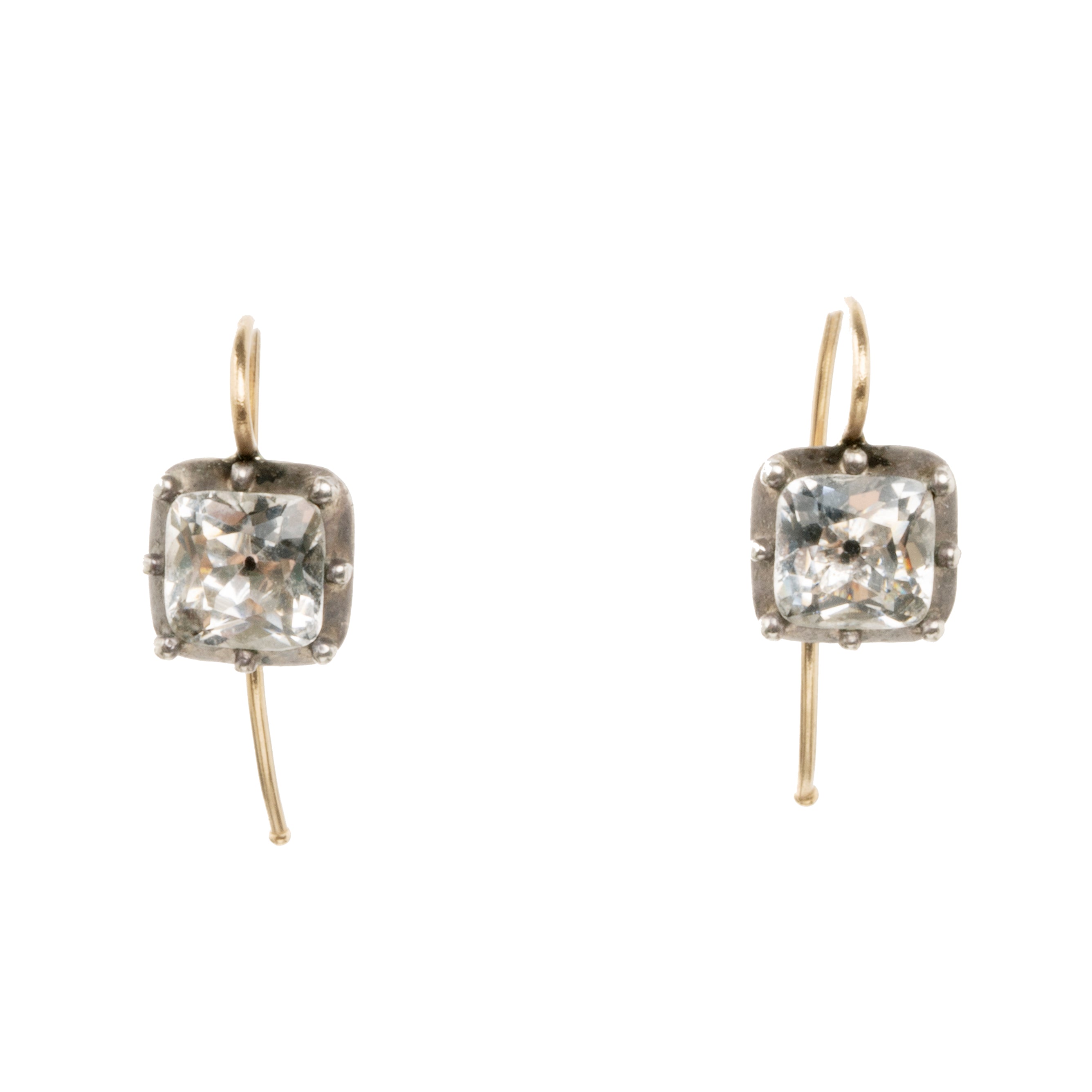 Petite Georgian era square white paste earrings. Paste stones set in silver topped gold settings. On 18k gold earrings wires. What were once beautiful Georgian era buttons or cufflinks are now perfect everyday earrings.