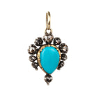 Georgian era Persian turquoise and rose cut diamond crowned heart, set in silver and gold. The rose cut diamond crown illustrates the sovereignty of love. English in origin. Circa 1800.