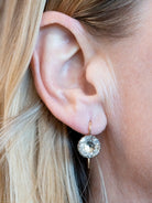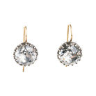 Georgian era round shaped white paste earrings. Paste stones are set in foiled back silver settings on 18k gold wires. What were once beautiful Georgian era buttons or cufflinks are now perfect everyday earrings. English in origin. Circa 1820.