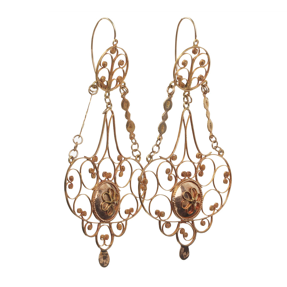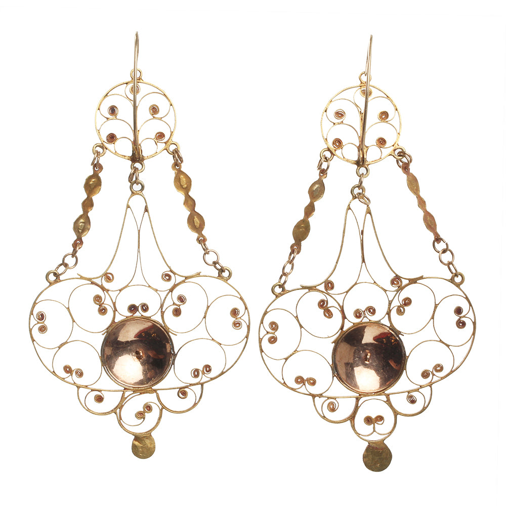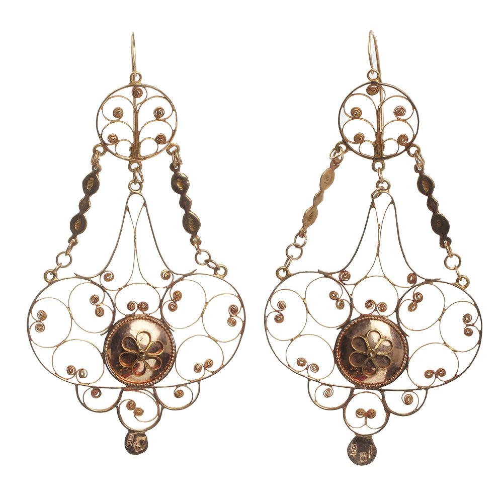 Late 18th Century French Provincial gold earrings. French in Origin. Fully hallmarked. Circa 1800.Unusual large scale and lightweight. This is literally a textbook example in excellent condition. This ring is featured on page 37, of the book “Georgian Jewelry” by Ginny Reddington Dawes and Olivia Collings .
