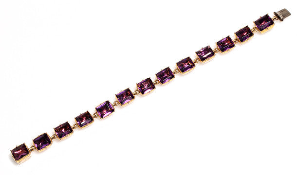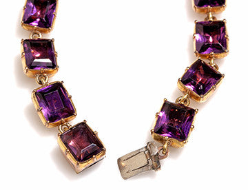Georgian gilt amethyst paste bracelet. Nice early foiled pastes in gilded metal settings. English circa 1820. See our Field Guide to learn more about paste jewels.