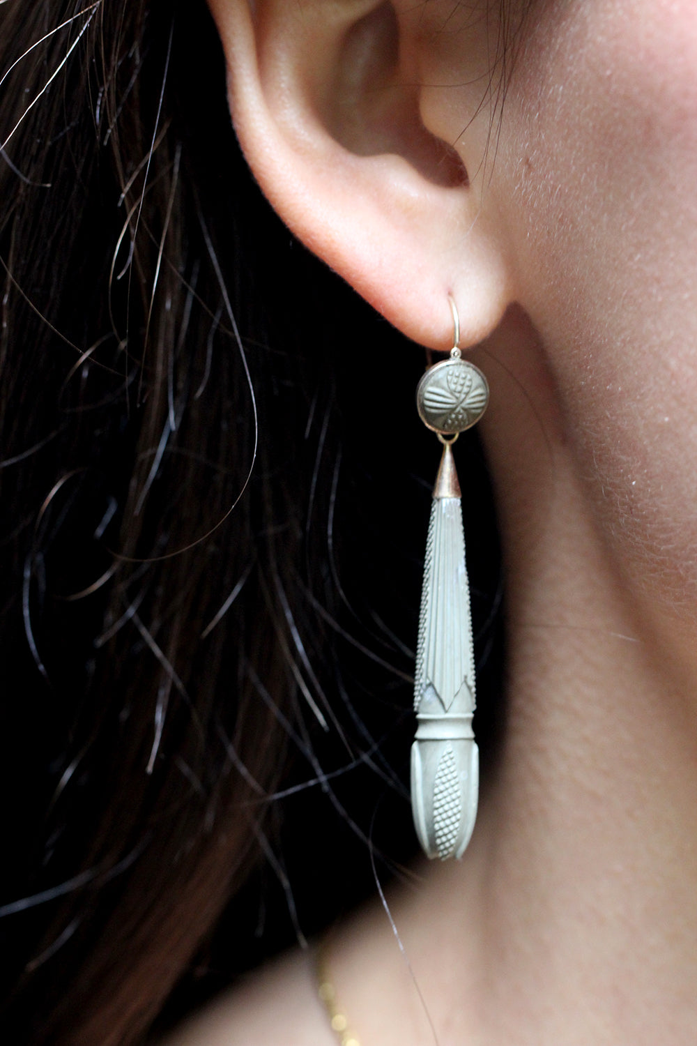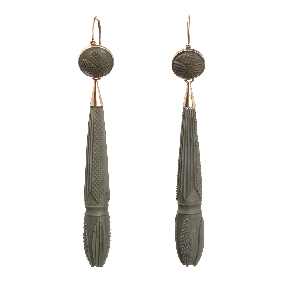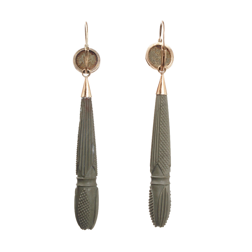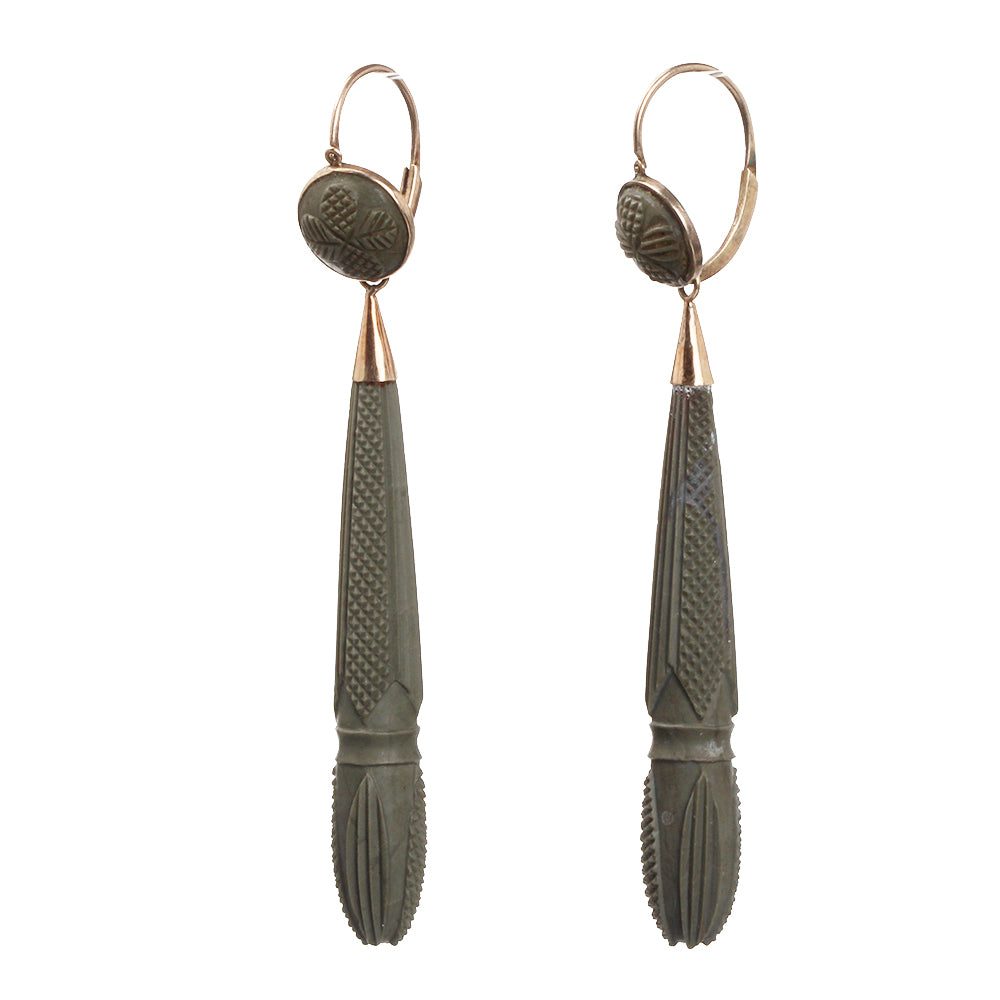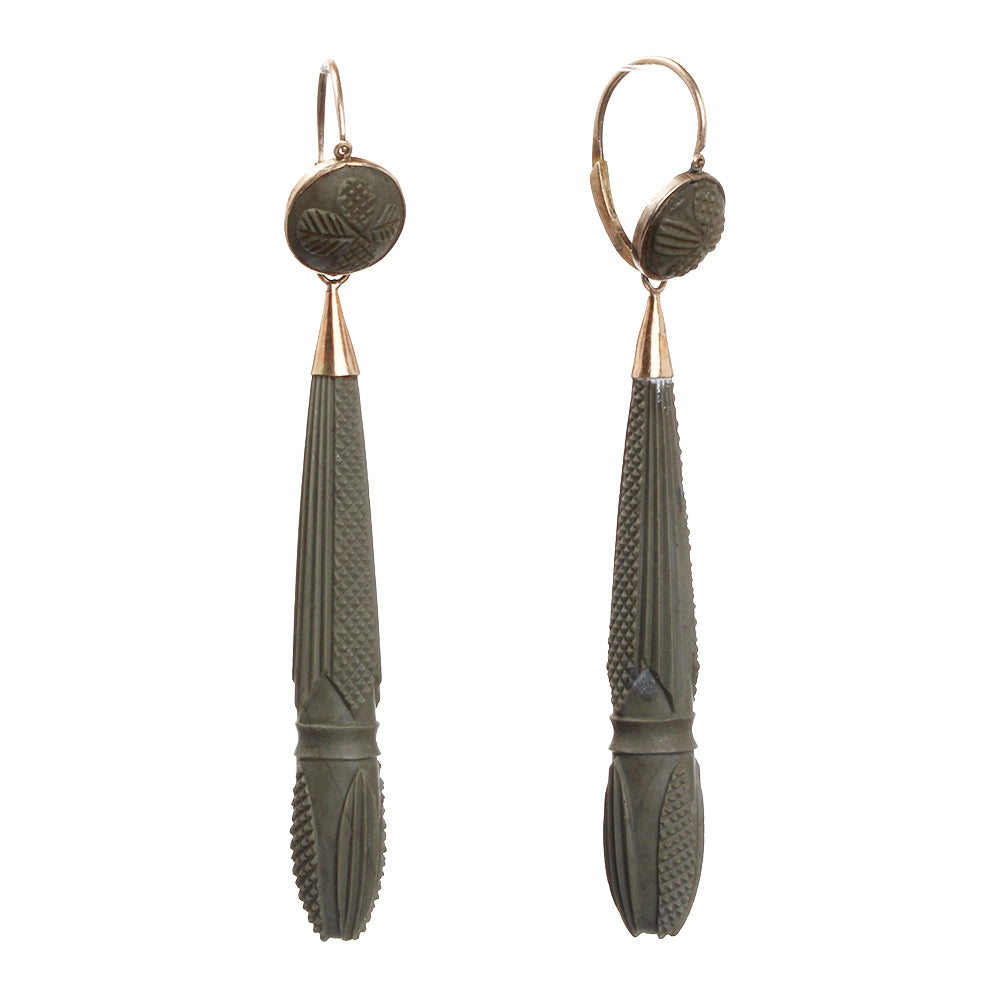 Georgian Era Carved Lava Torpedo Drop Earrings