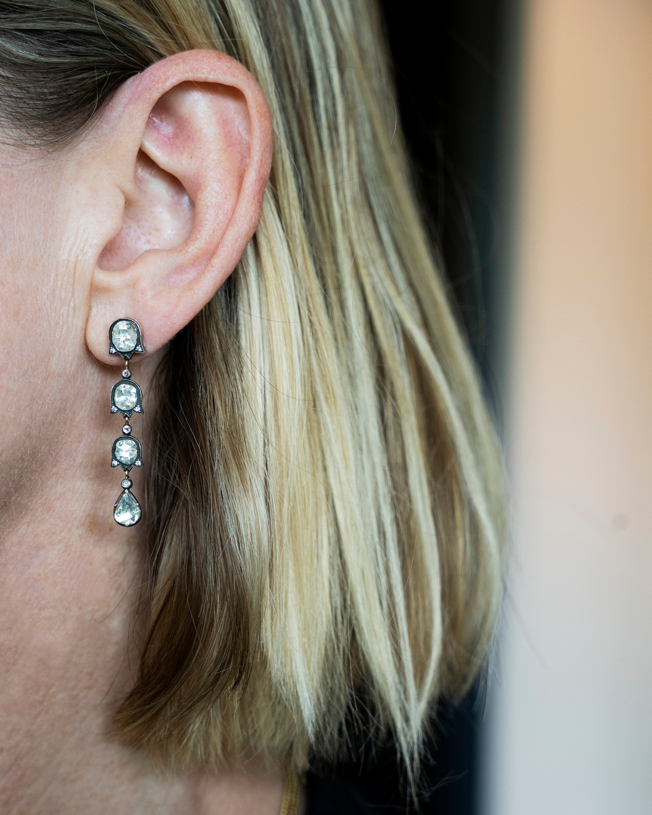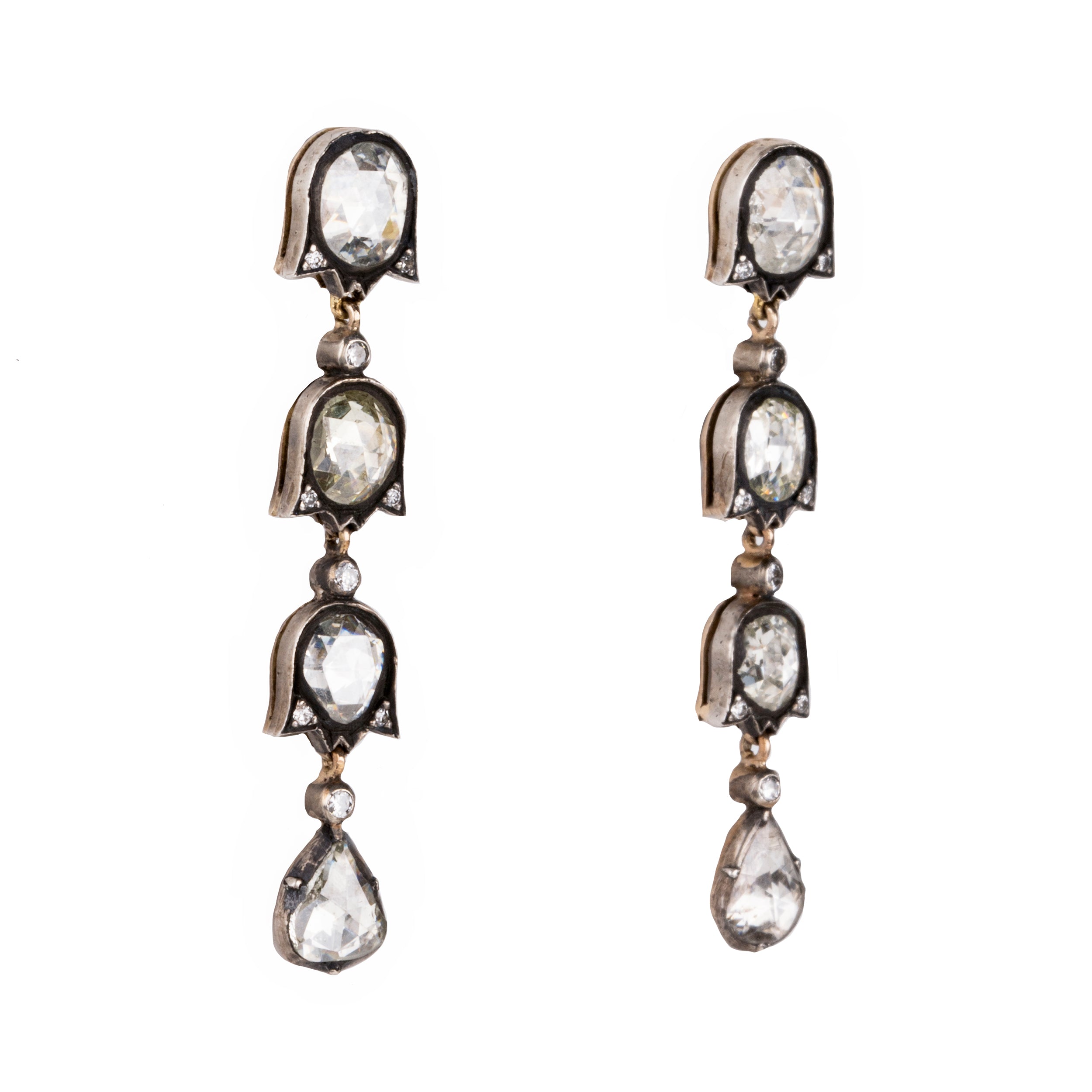 Victorian Era Lily of the Valley Rose Cut Diamond Earrings