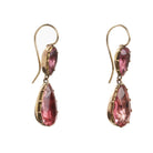 Georgian paste tear drop earrings. Lovely pink topaz colored paste stones are set in foiled back gold settings. English in origin. Circa 1820.