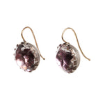 Georgian era round pink paste button earrings. Paste stones are set in pink foiled back silver settings on 18k gold wires. What were once beautiful Georgian era buttons or cufflinks are now perfect everyday earrings. English in origin. Circa 1810.