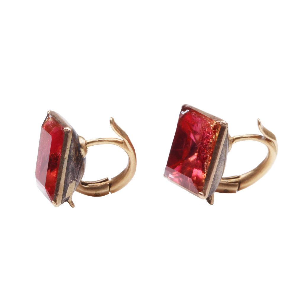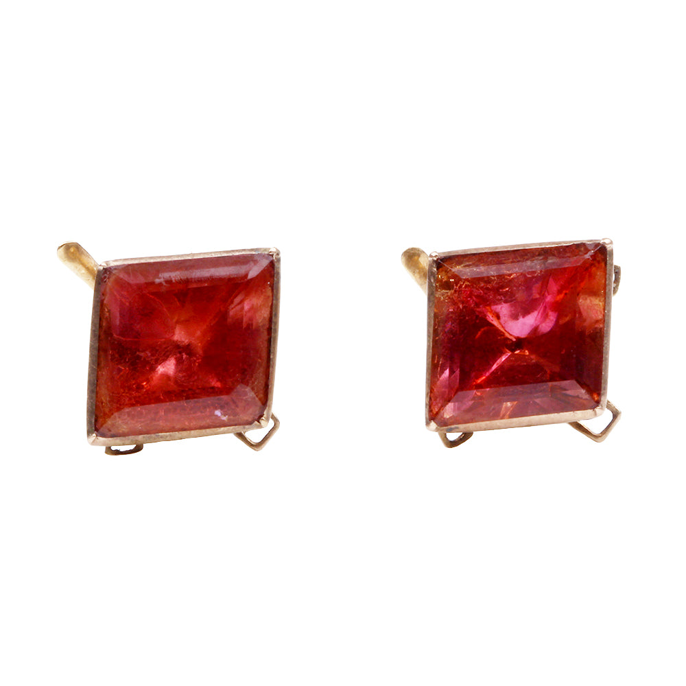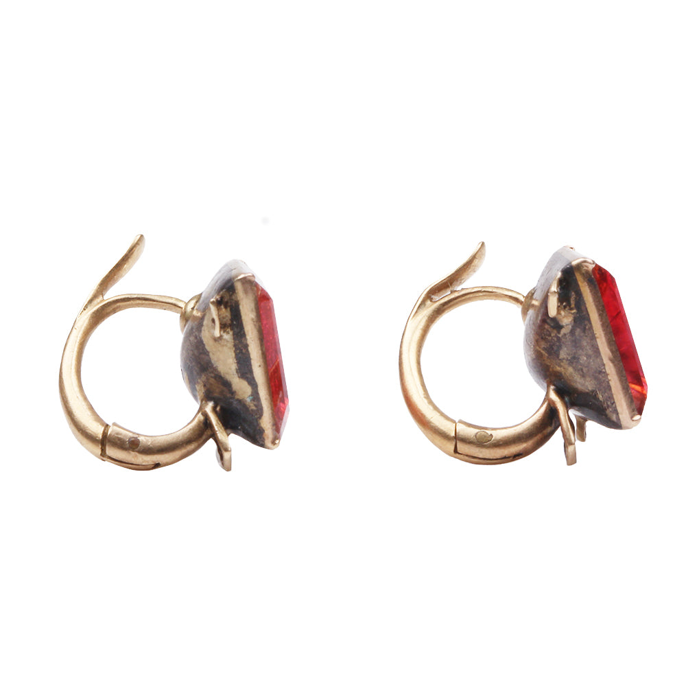 Georgian era doublet rock crystal earrings. Topaz peach colored foiled with silver back, in 18k gold settings. English in origin. Circa 1800.