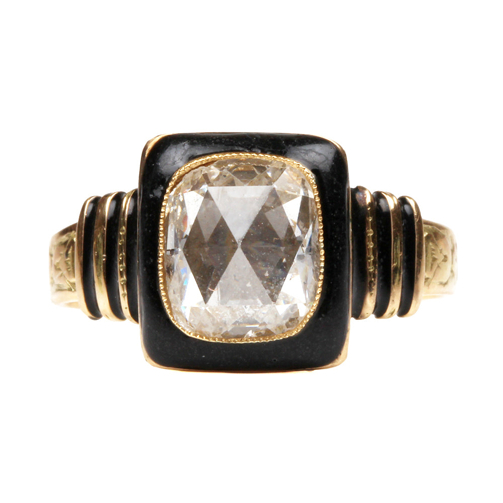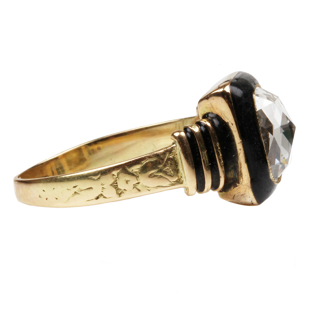 19th Century Rose Cut Diamond and Black Enamel Ring