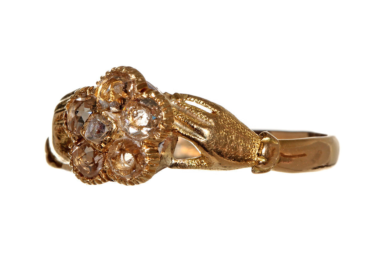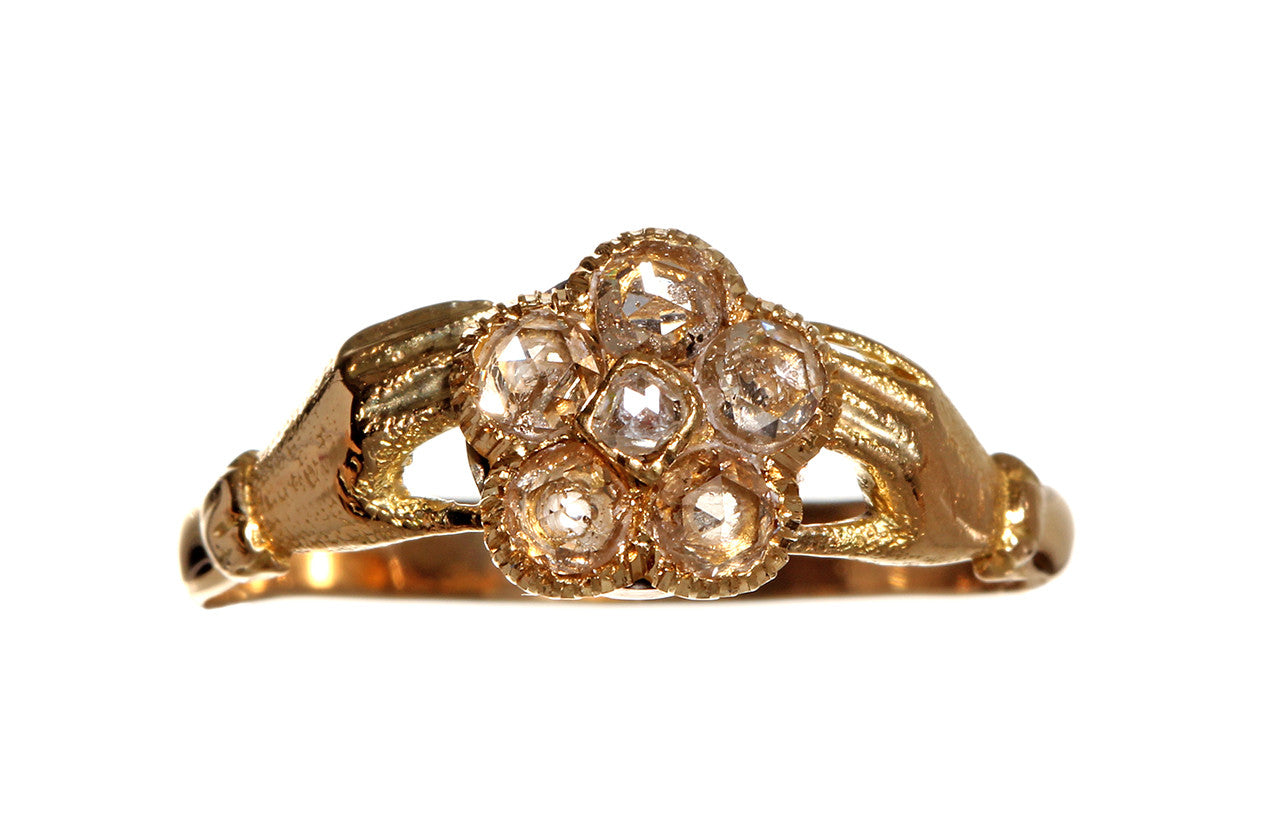 Georgian Rose Cut Diamond Clasped Hands Ring