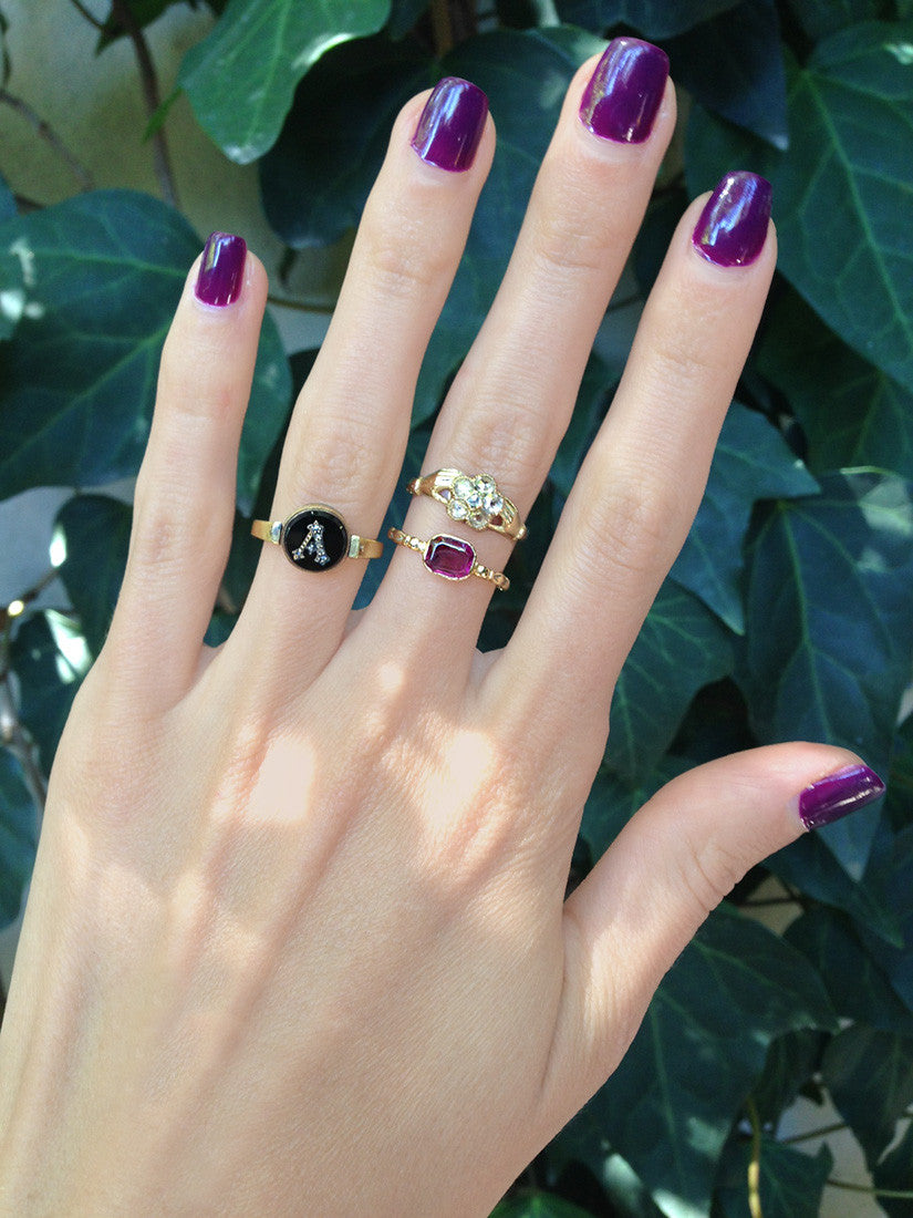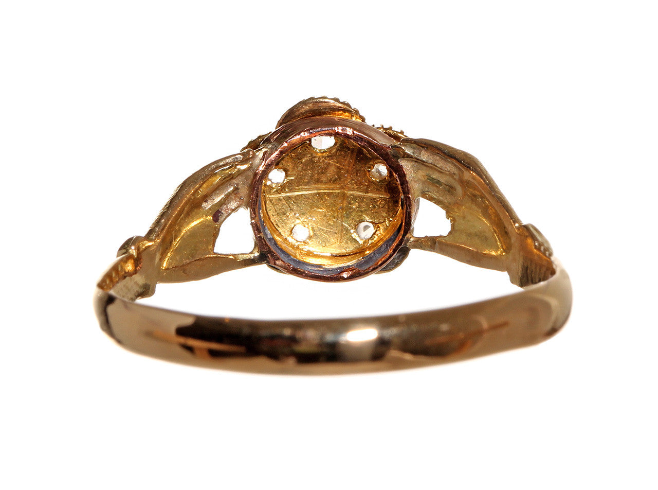 There was originally a locket compartment concealed in the reverse of this ring. The original glass has been lost with time.