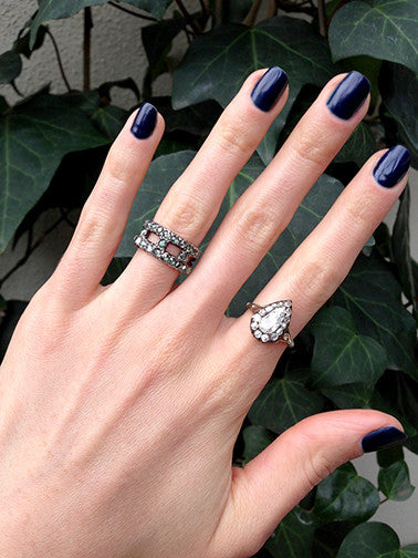 Shown on model with our Pear Cut Diamond Ring sold in-store only.