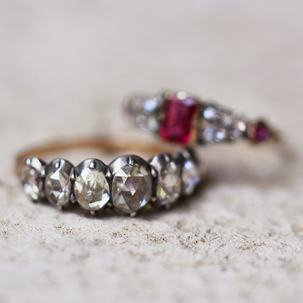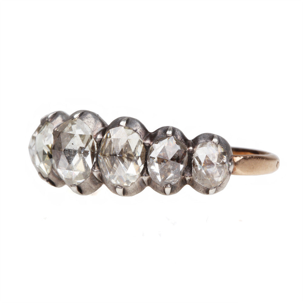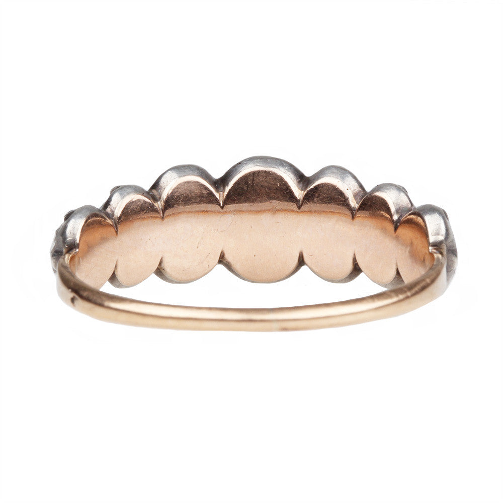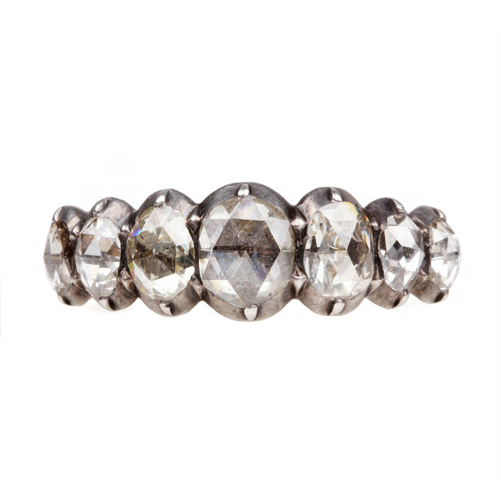 Georgian rose cut diamond half-hoop band. Nice large scale rose cut oval diamonds set in cut-away settings. Set In silver on gold, typical for the period. English in Origin. Circa 1780 -1820.