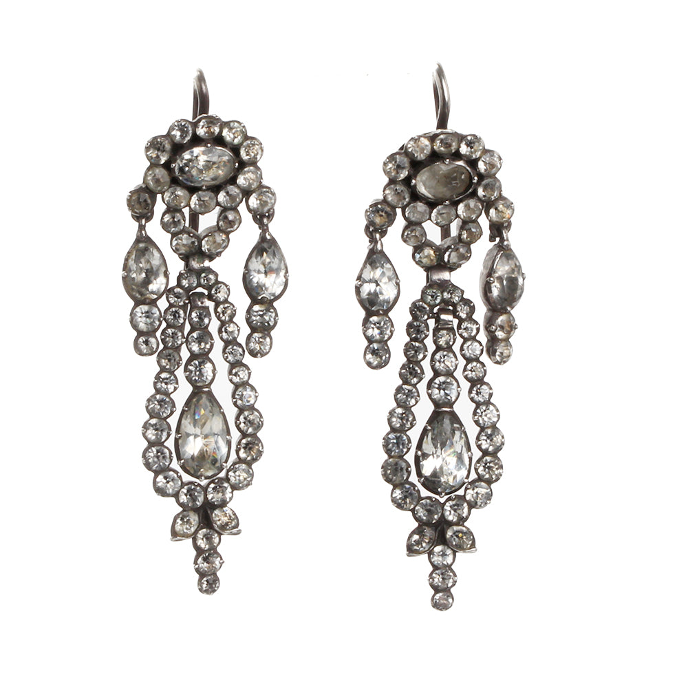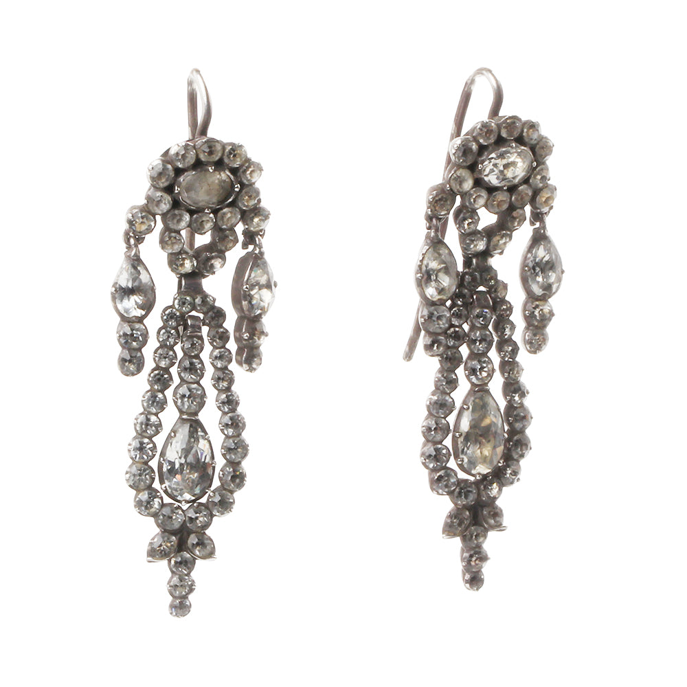 Georgian white paste earrings, in silver. English in origin. Circa 1810.