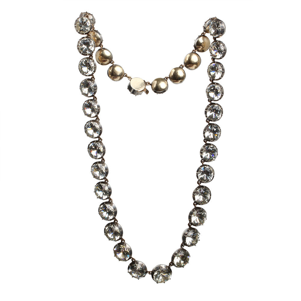 Georgian era white paste rivière necklace. Round paste stones set in 15k gold. Lays beautifully on the neck. Circa 1810. English in Origin.