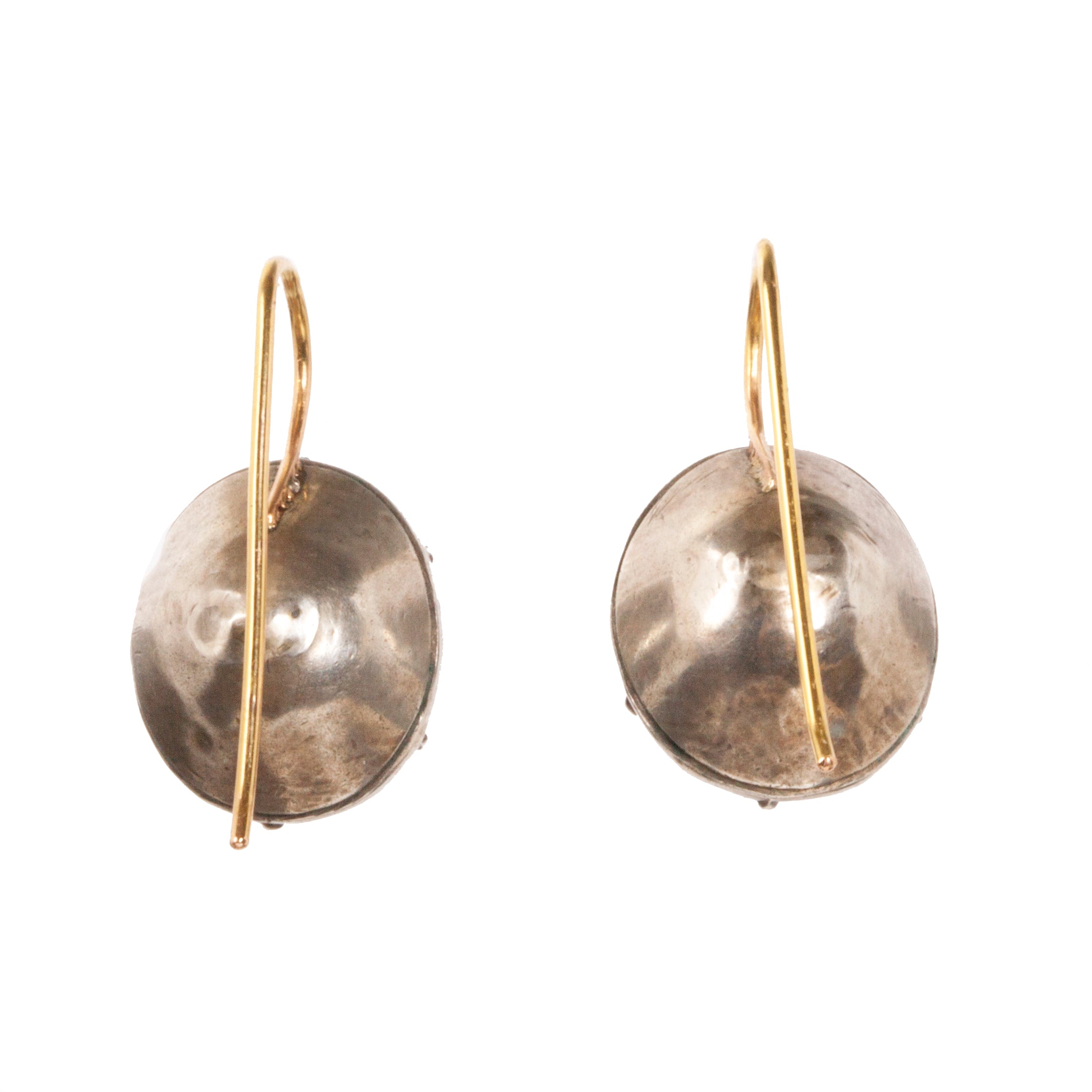 Georgian yellow oval paste button earrings in silver with gold wires. Circa 1820. English in Origin.