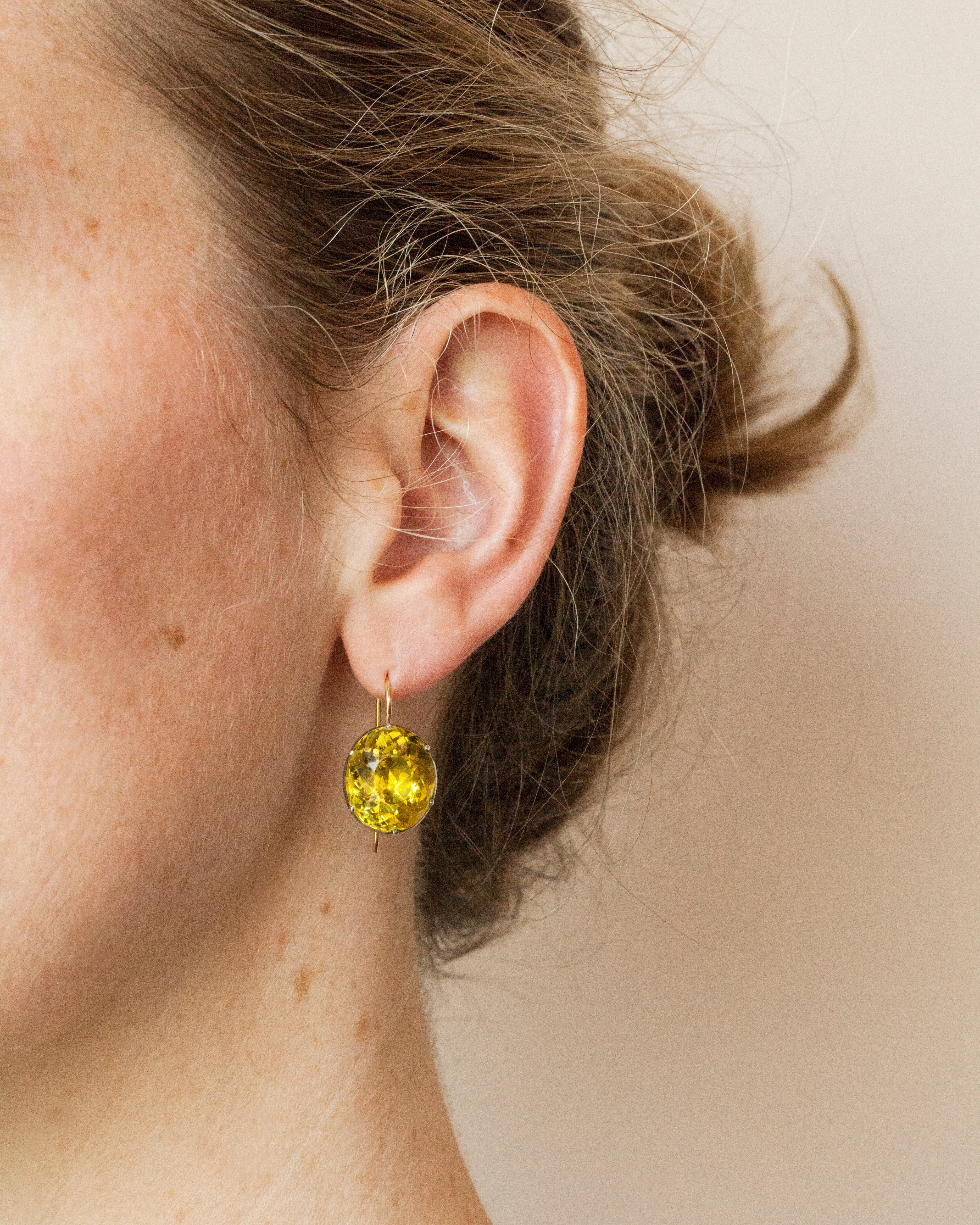 Georgian Yellow Oval Paste Earrings