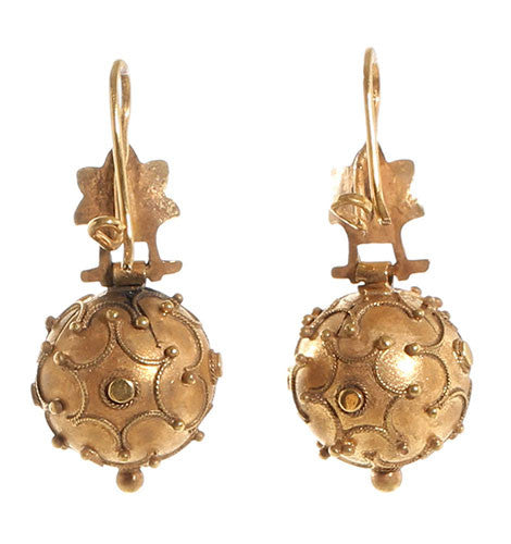 Victorian Era Earrings in gilded metal with Gold wires. Found in England. Circa 1860-80. Small in scale. Perfect everyday earrings.