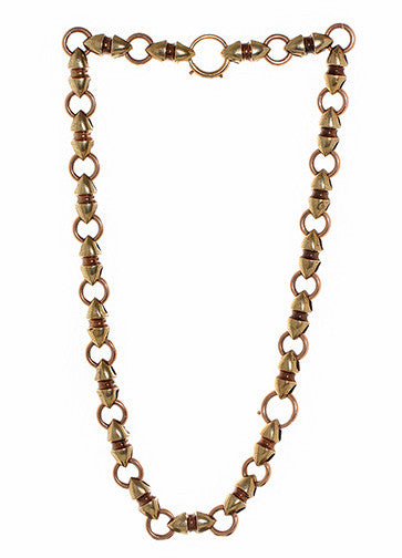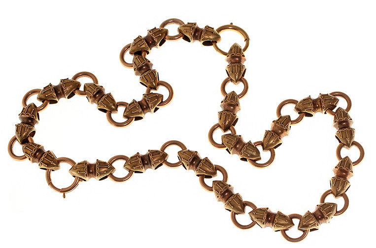 Circa 1870-1880 14k multi colored gold chain with great etruscan revival details.
