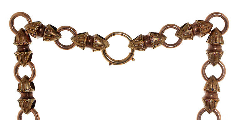 Chain measures 19" in length and two original spring-ring closures. The reverse side of the necklace is plain and can be worn face-up for a different look.
