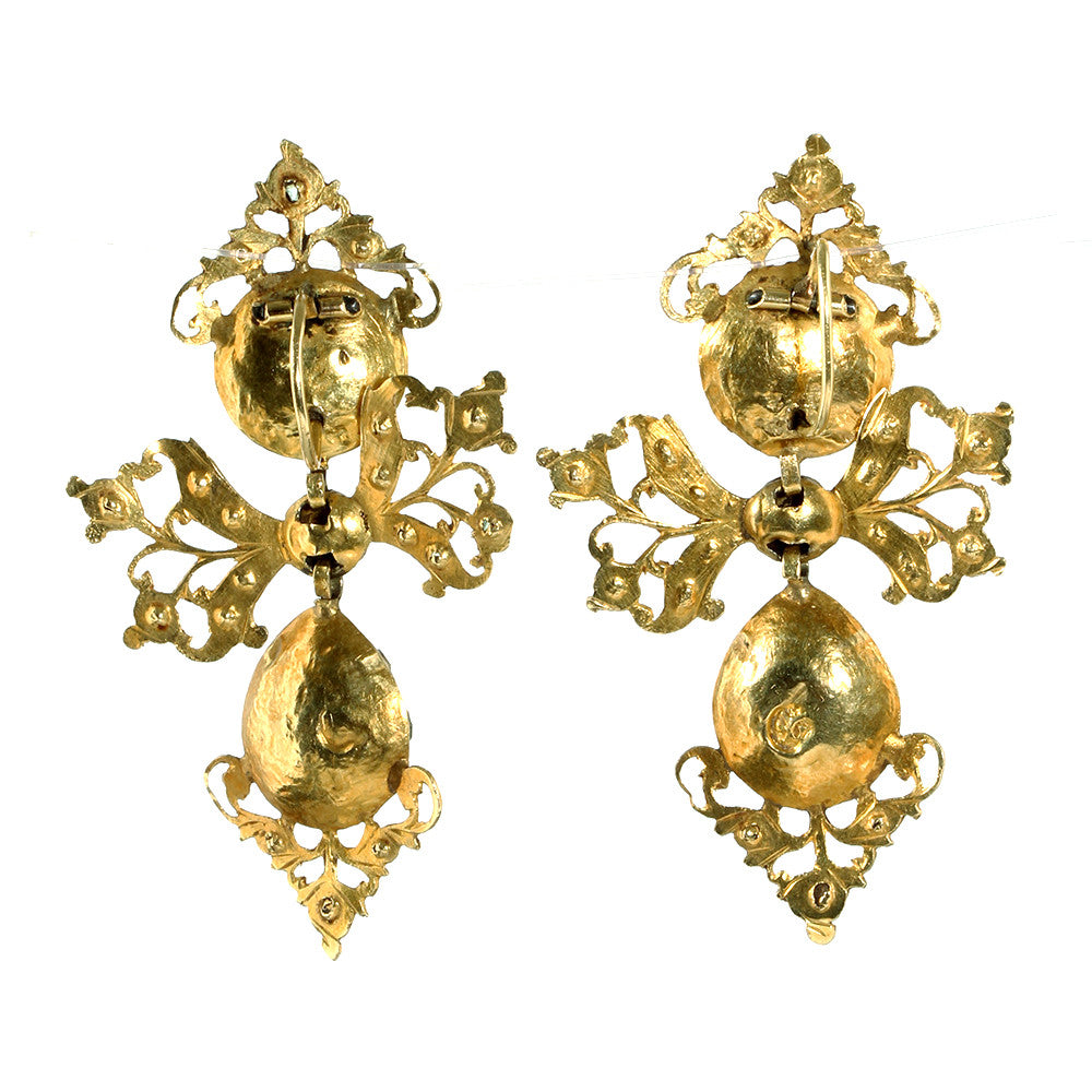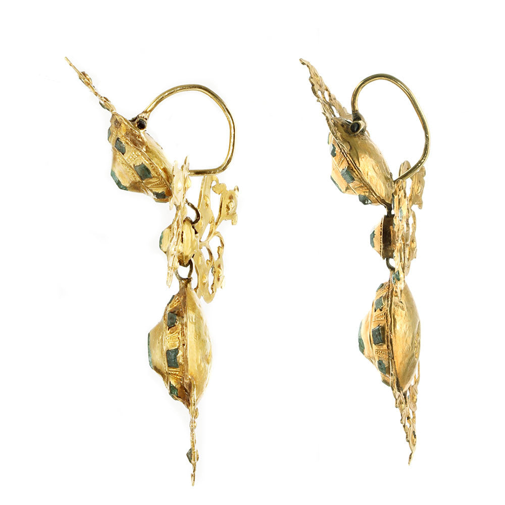 18th Century Iberian Gold Emerald Lazo Drop Earrings