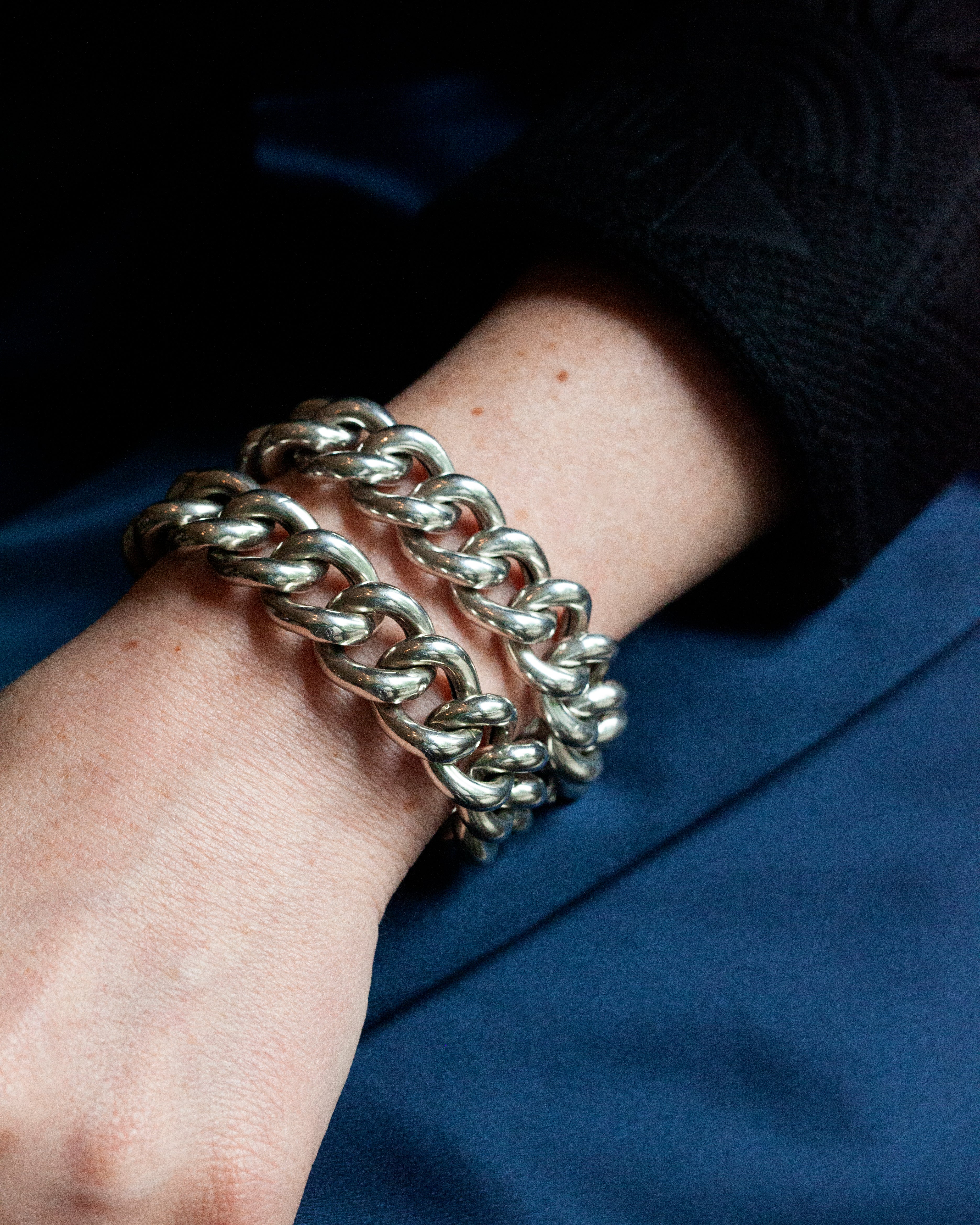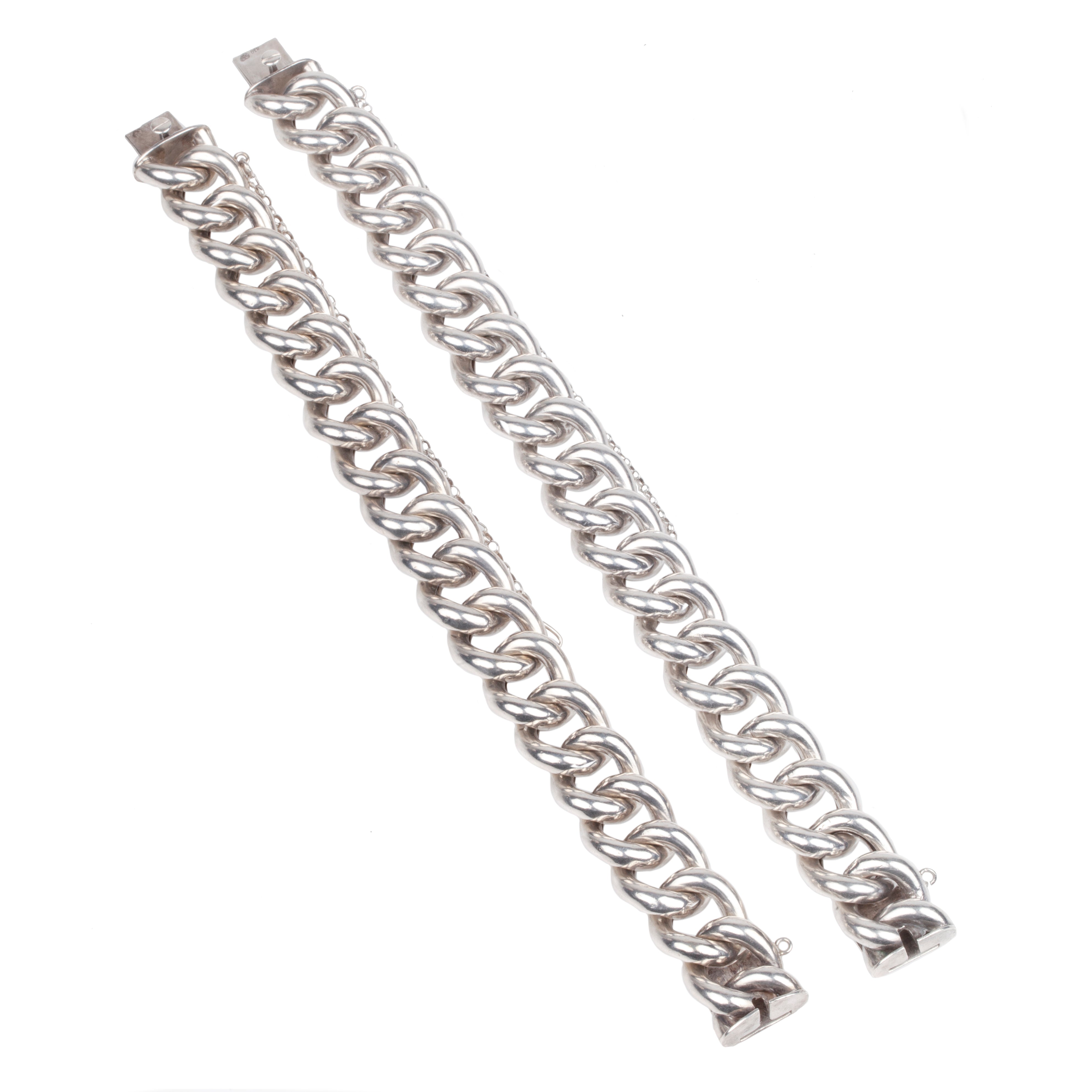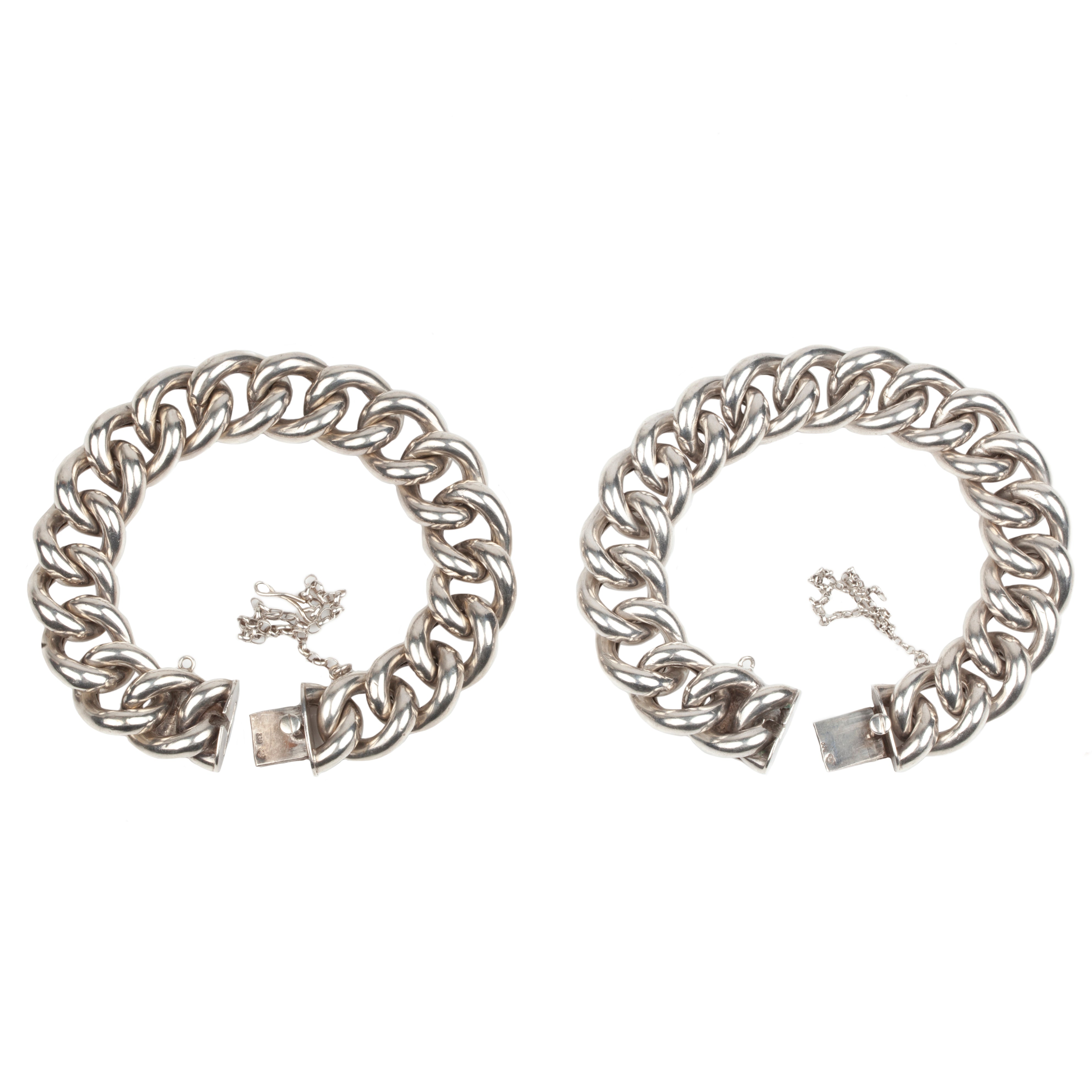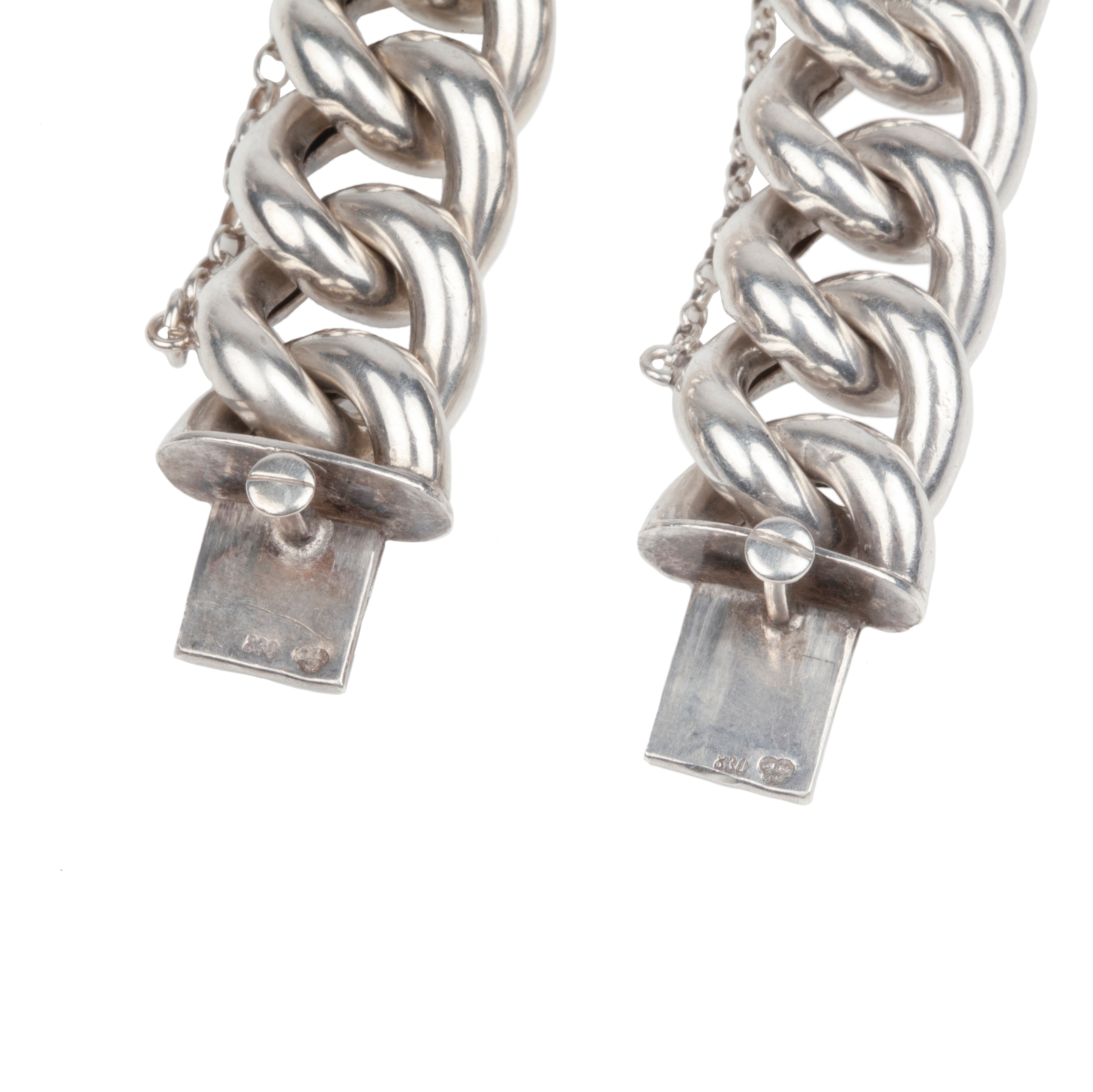 Matched set of chunky curb linked bracelets. A very modern look, the bracelets can be worn stacked as bracelets or connected to make a short necklace. The links are hollow making the bracelets light in weight. Swedish Hallmarks. Circa 1880.
