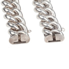 Hidden push clasps with safety chains. Measures 8" in length and .50" wide chain.