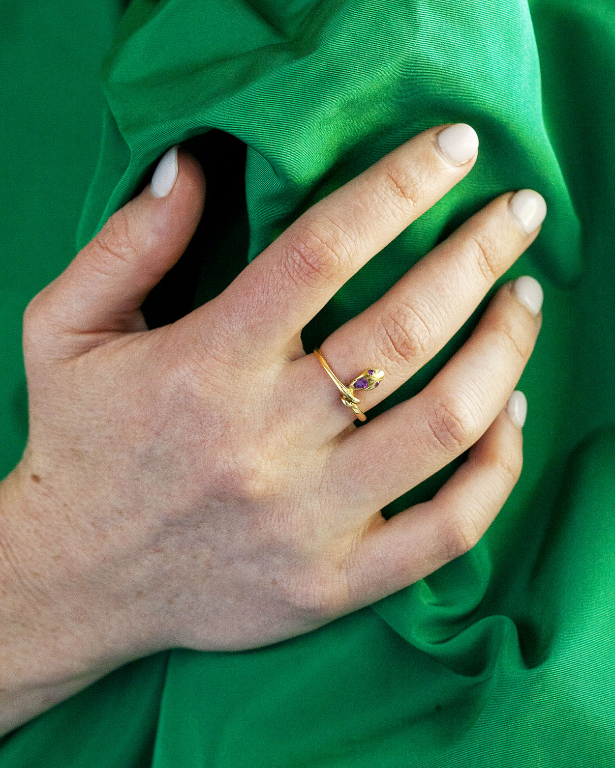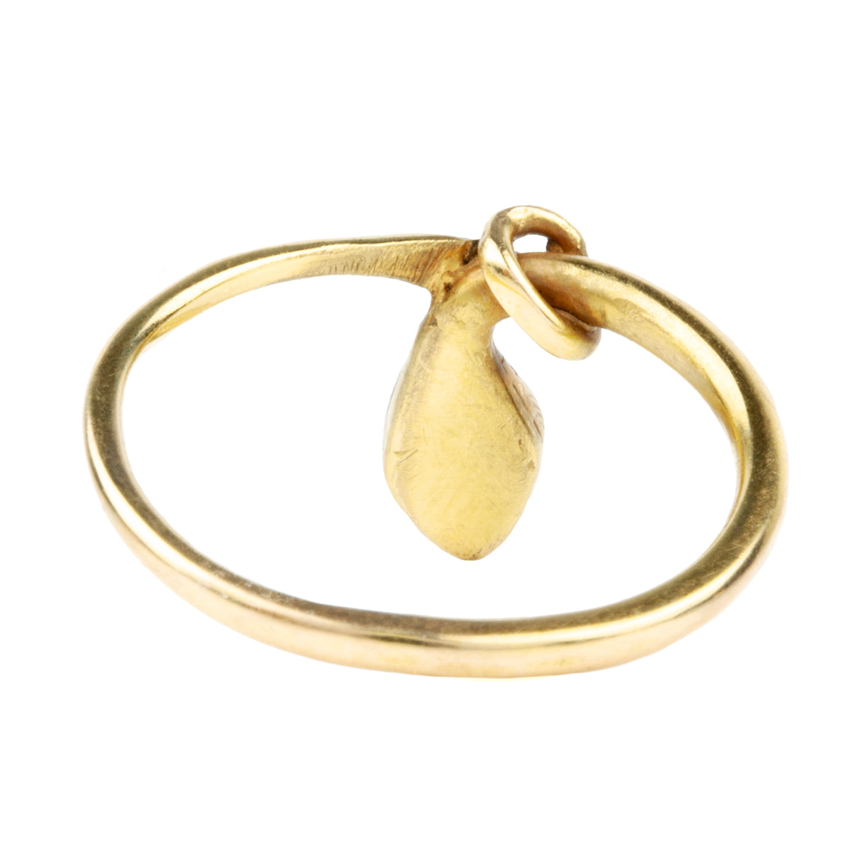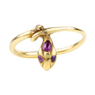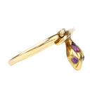 A lovely example of a serpent ring representing a wonderful sentiment. The snake was a popular Victorian Era symbol for eternal love and rubies were often utilized in love token jewels as they were representative of passion.