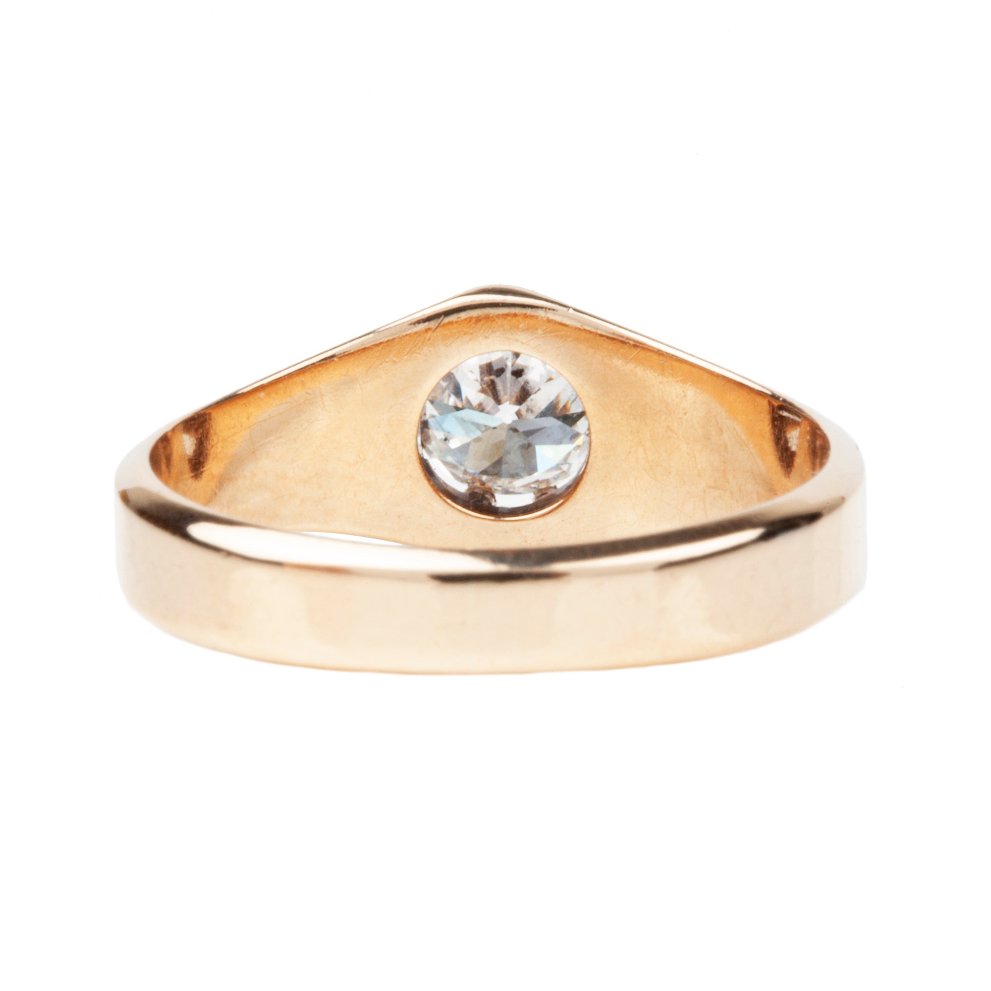 Early 20th Century old European cut diamond solitaire ring, in 14k gold. Bold deco machine age details. Approximately .55 carat stone. Eye clean.