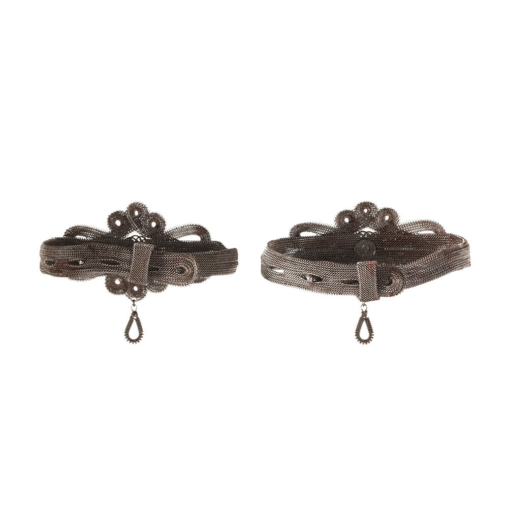 Rare matched set of silesian iron work bracelets. Circa 1800. In great condition with adjustable clasping mechanisms.