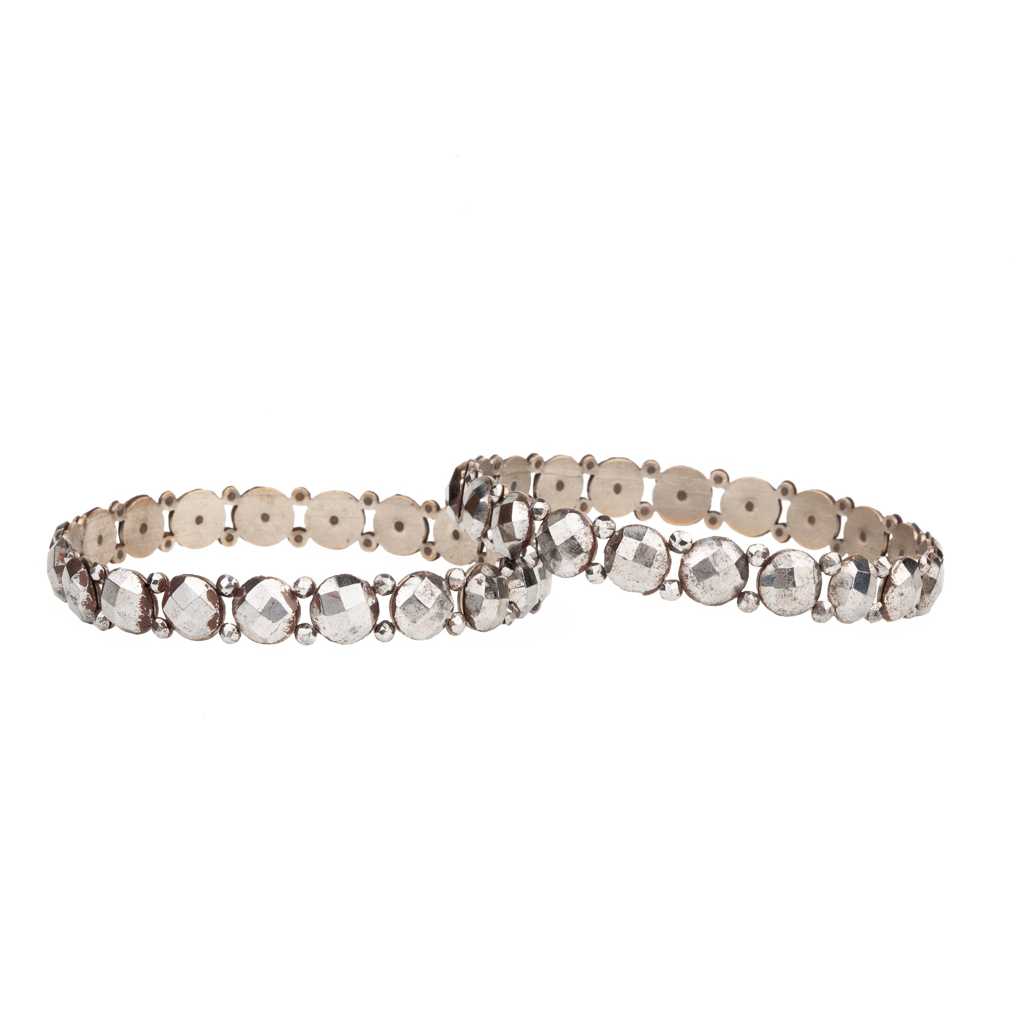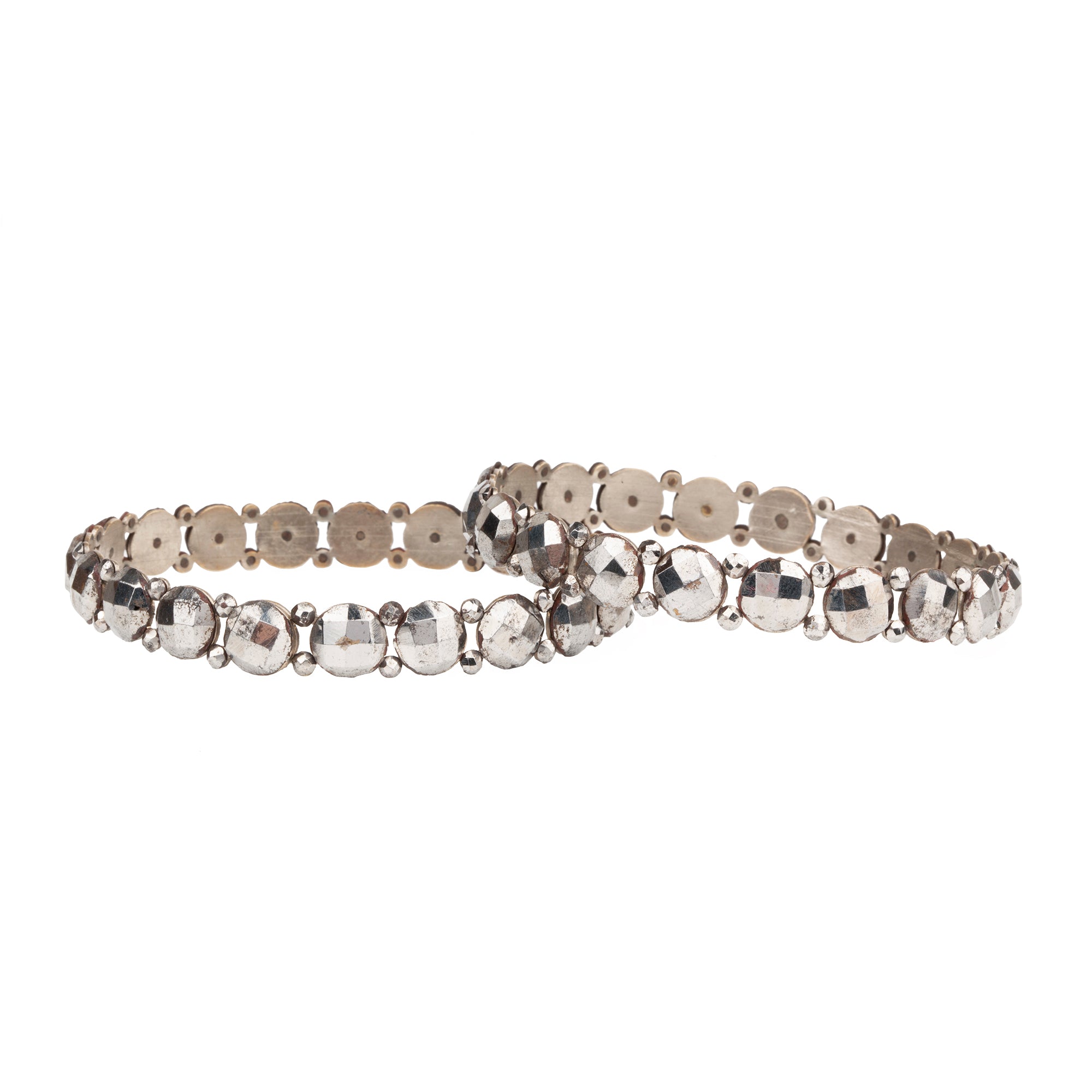 Mid 19th century matched cut steel facetted bangles. Original in form and in good condition. English in origin. Circa 1805.