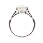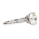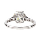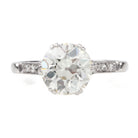 Beautiful classic Old European cut round diamond ring in vintage platinum setting. Center stone is approximately 2.45 carats, L-M in color and VS2 in clarity, flanked by 6 single cut diamonds, in a delicate 6 double prong setting.