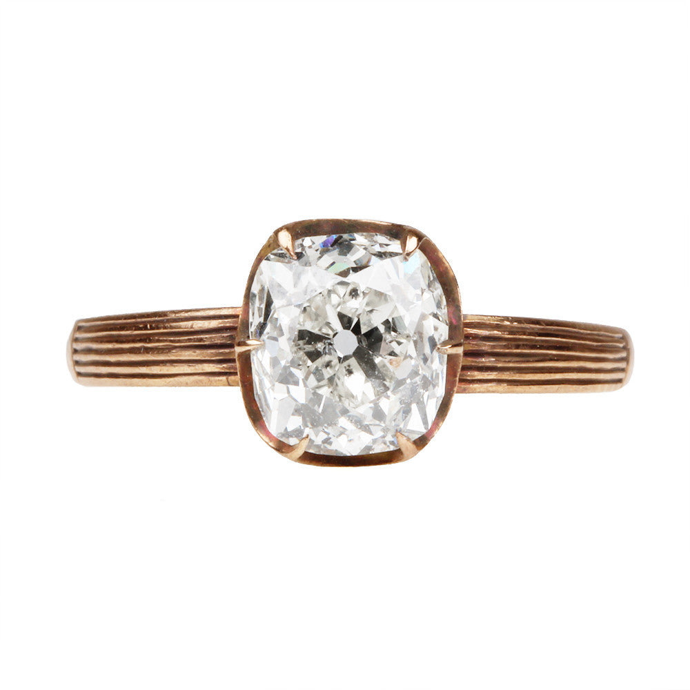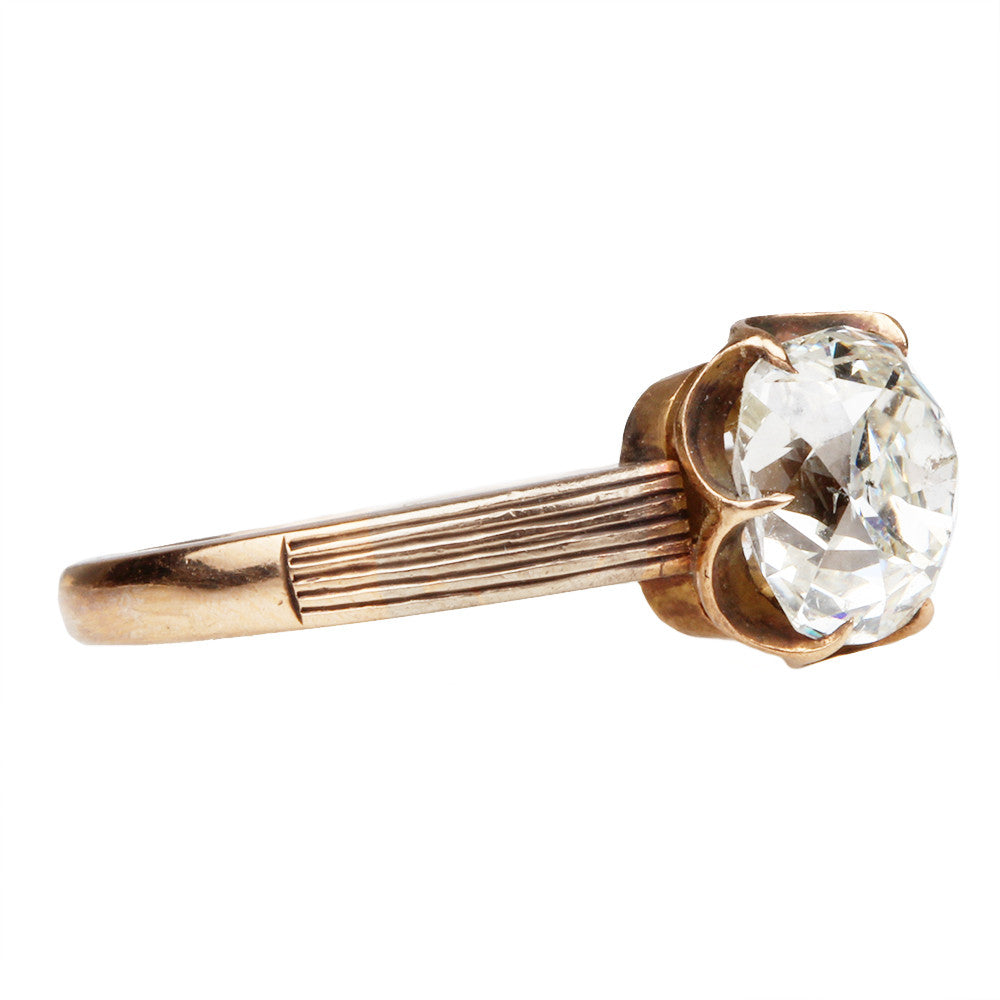 Reeded Shoulder Old Mine Cut Diamond Solitaire Ring
