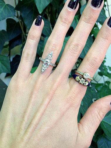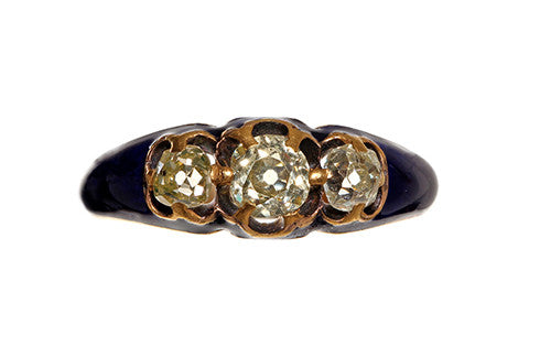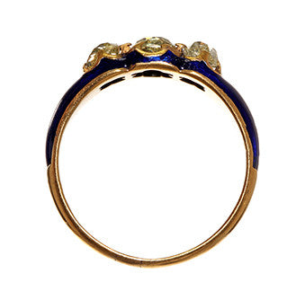 Old Mine Cut Three Diamond and Blue Enamel Ring