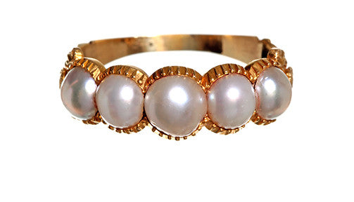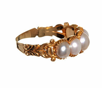 Georgian era ring with natural pearls set in 18k gold. English in origin. Early 19th Century.