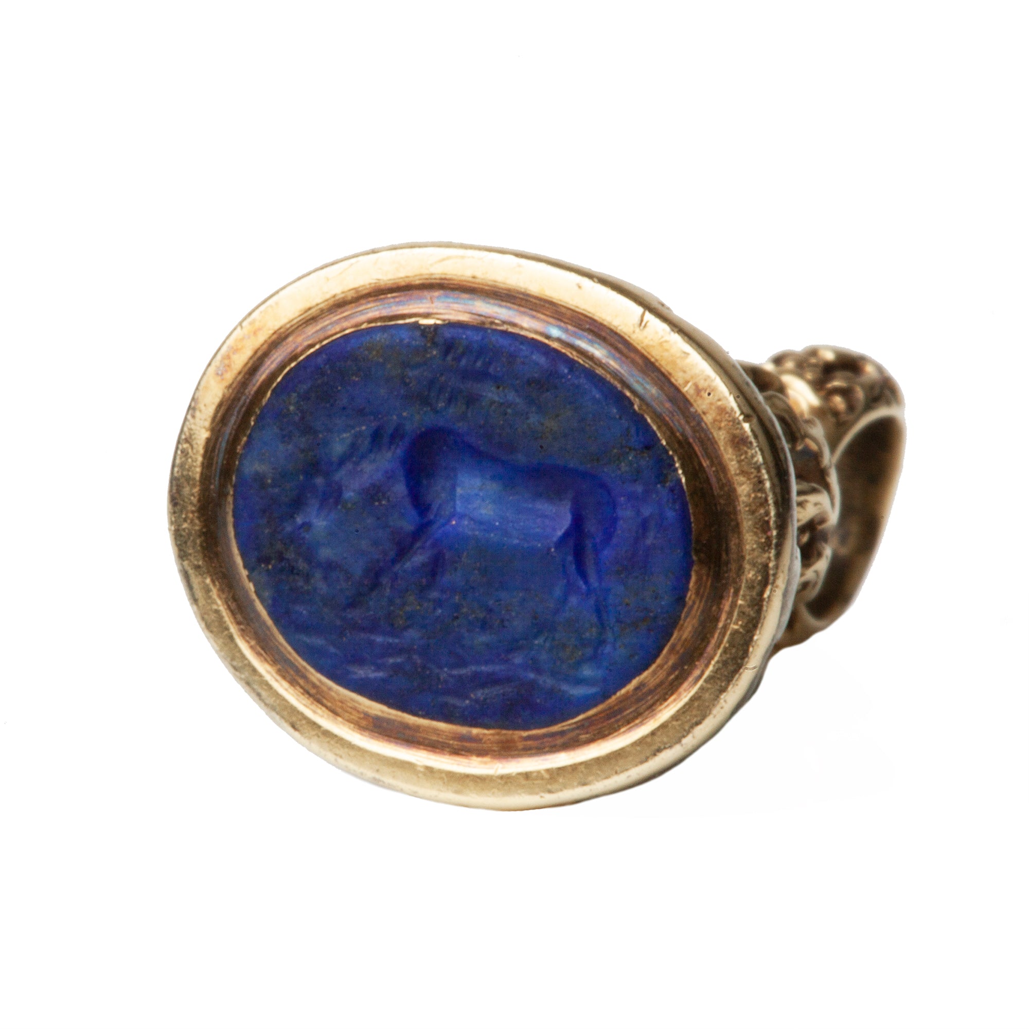 Petite Roman Era Lapis Horse and Scorpion Intaglio in Georgian Era Fob