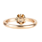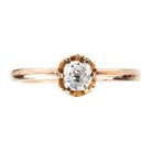 Petite vintage solitaire diamond ring, in 10k gold. An antique old mine cut diamond, set in a scalloped style setting. The center old mine cut diamond is approximately .31 carats. Circa 1920.