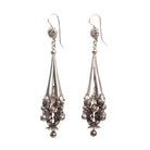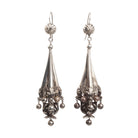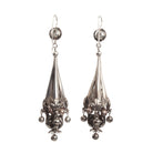 Rare example of a fine Victorian Era earring in sterling silver. Very large in scale and finely crafted. Original 150 year old condition. Construction is light in weight. Great dramatic, wearable earring. English in Origin. Circa 1870.