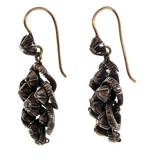These must have been part of a larger piece of jewelry in their original form. Notice the remnants of a hinge at the bottom of each earring. 15k Gold ear wires. Drop measures approximately 1.5".
