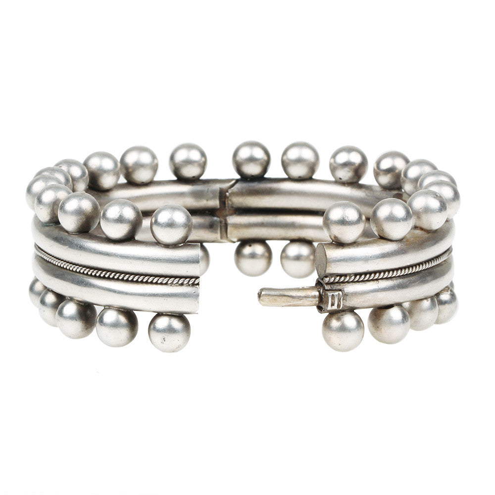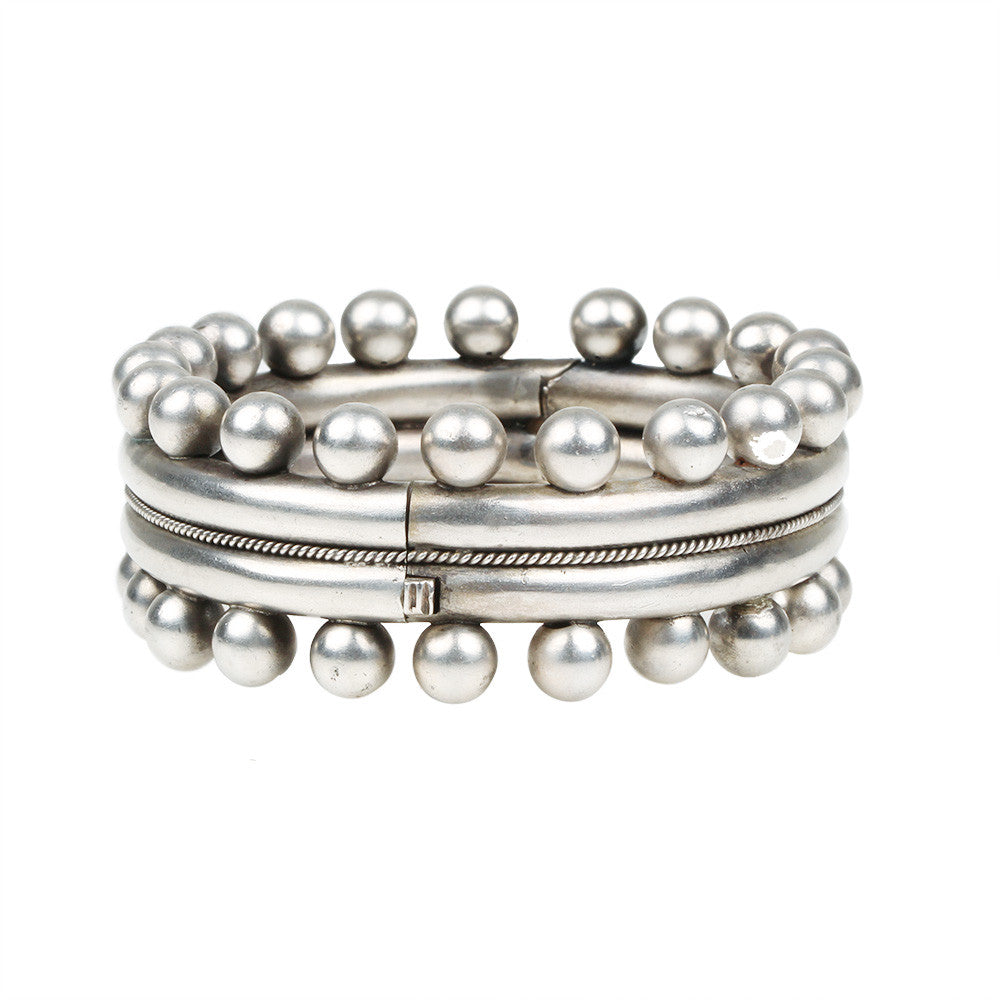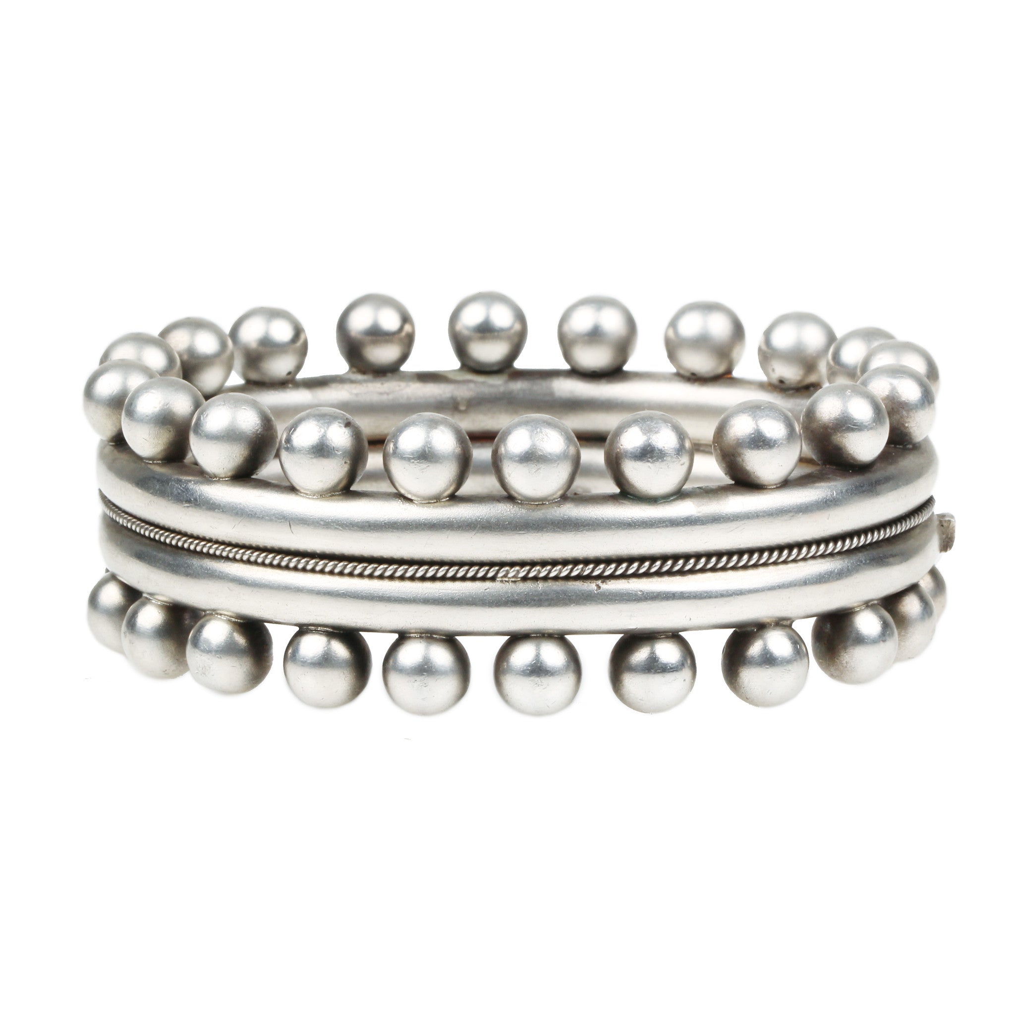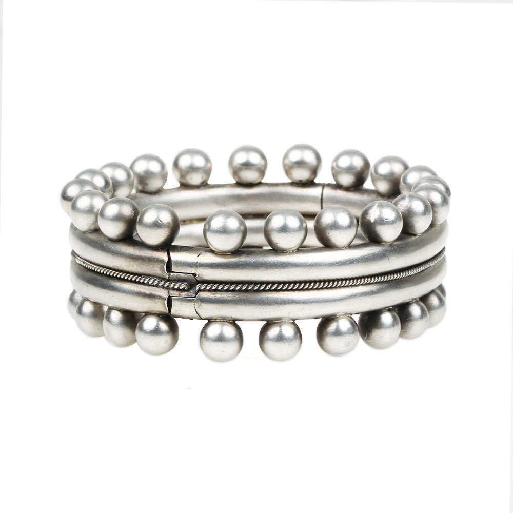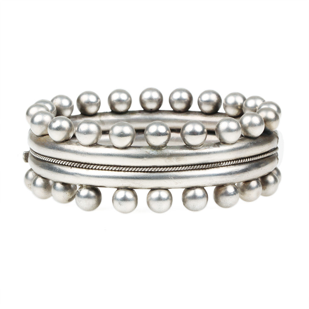 Victorian English sterling bangle with ball details. English in origin, circa 1880.