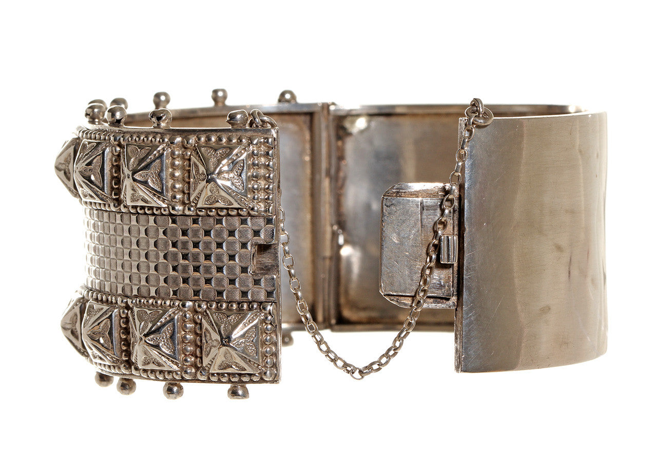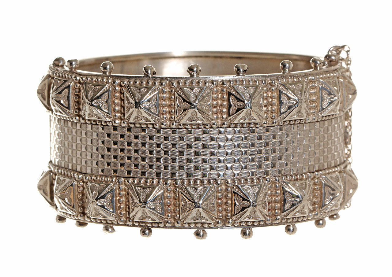 English Sterling Bangle with studded detail. Remarkably modern in it's design. See our Field Guide to learn more about english sterling jewels from this time.