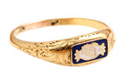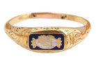 Swedish blue and white enamel hands ring symbolizing friendship in 18k gold made in 1856.
