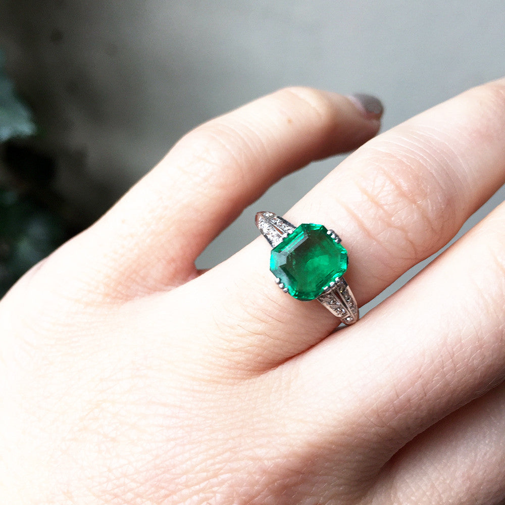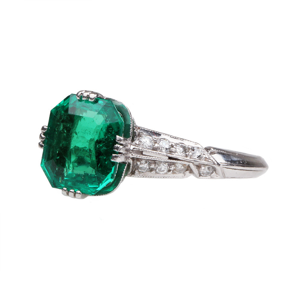 Tiffany & Co. Art Deco Emerald Diamond Ring