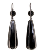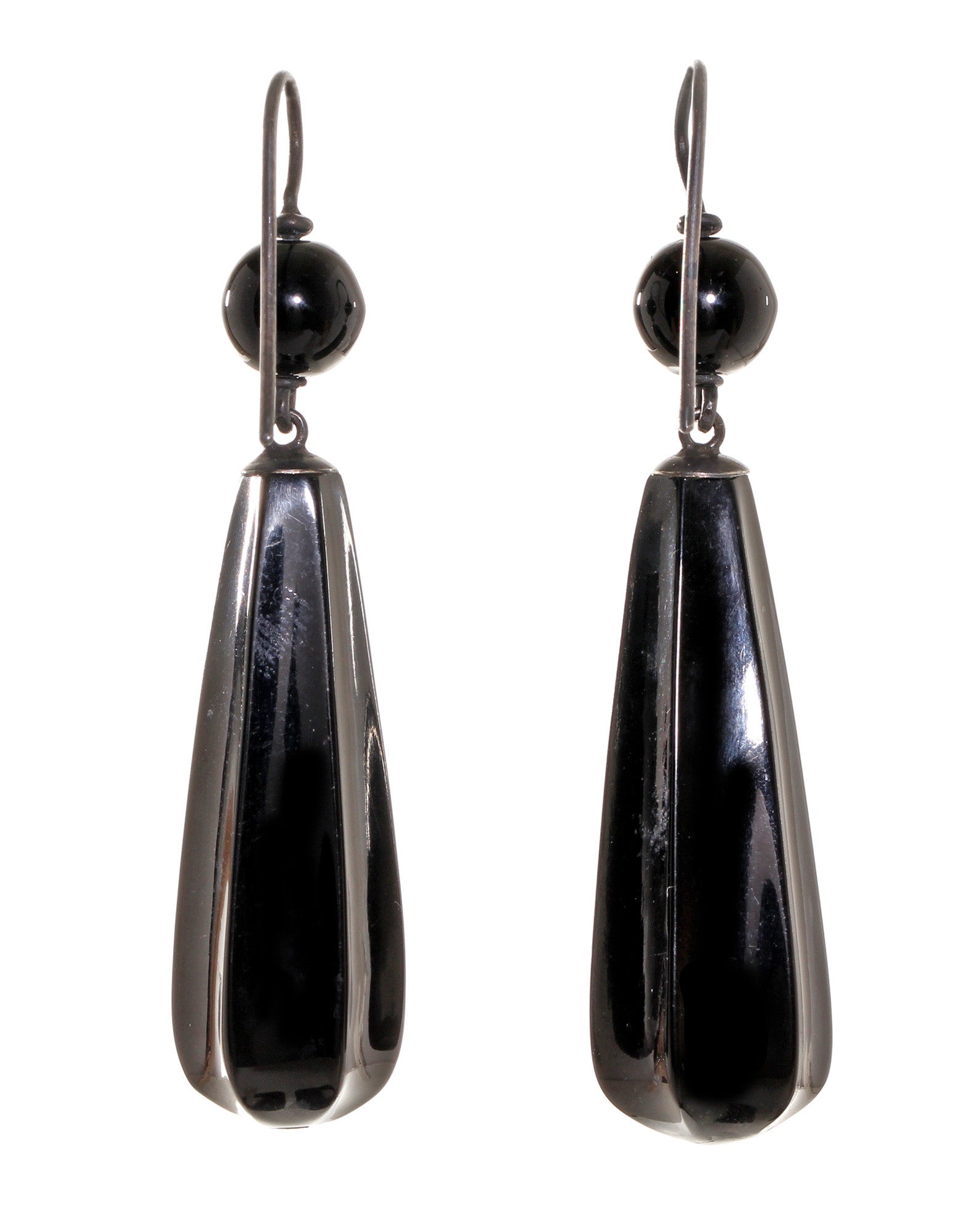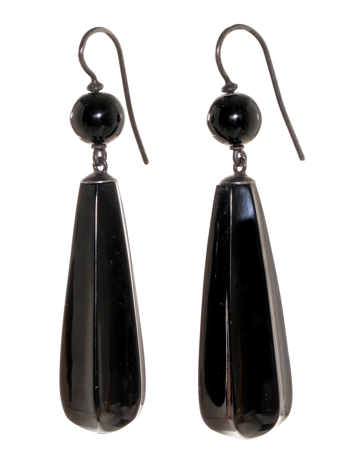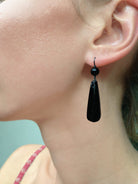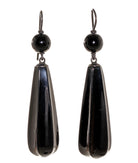 Victorian Jet Earrings. Hand carved in Jet. circa 1860-70. English in origin. Very light in weight and easily worn. Silver ear wires.