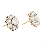 Turn of the century old mine cut diamond cluster earrings, in platinum topped gold settings. Approximately 2.5 carats in total diamond weight, H/I color. American in origin. Circa 1920.
