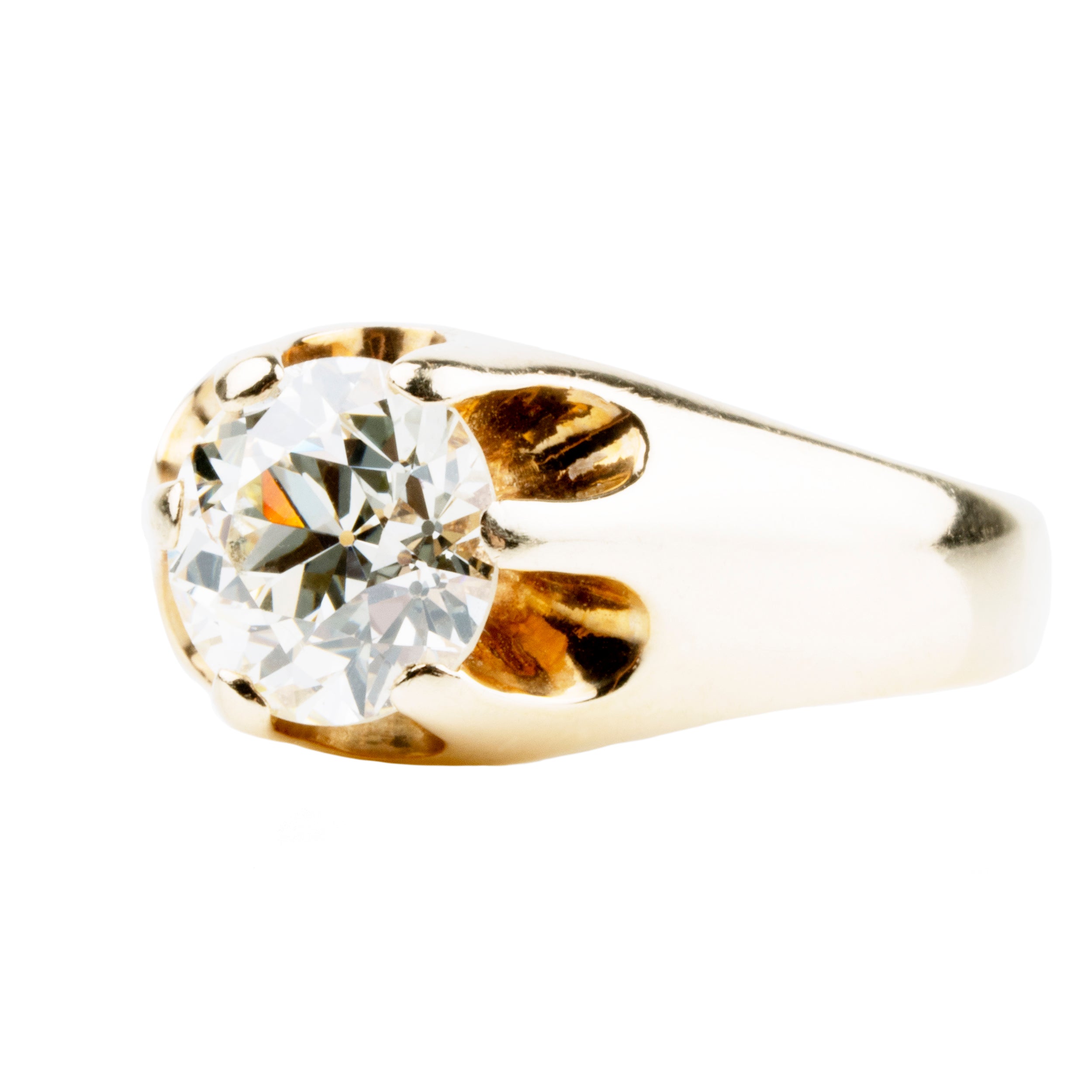 Turn-of-the-century diamond solitaire ring, in 14k gold. Antique old European cut diamond, Estimated at approximately, 1.41 carats, K/L color, and VS2 in clarity.
