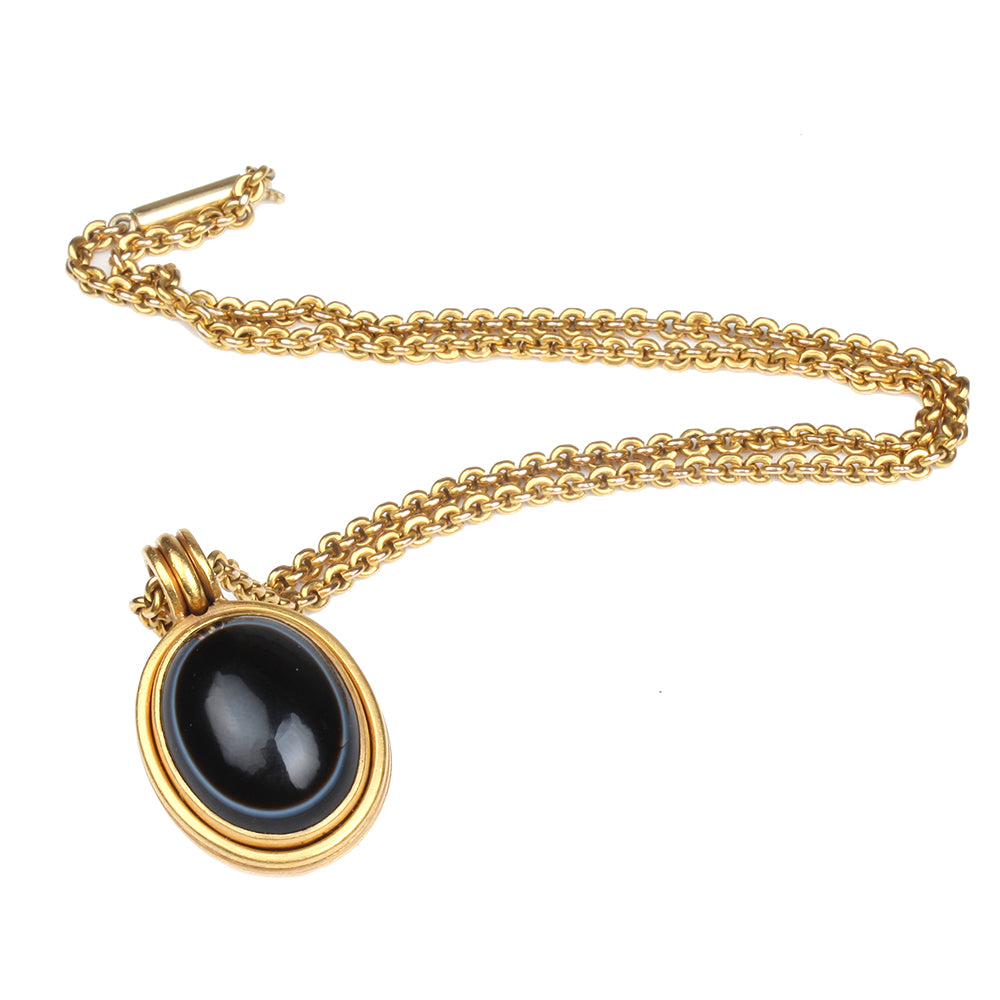 Victorian Agate and Rock Crystal Locket Necklace