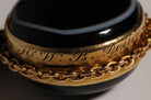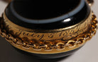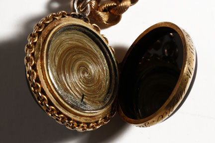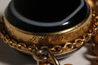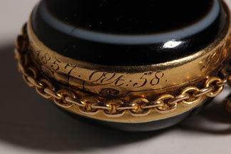 Victorian banded agate locket is a mourning piece set in 9k gold and dated 1857.