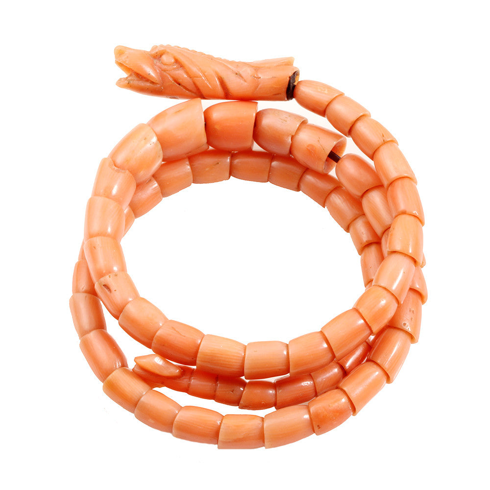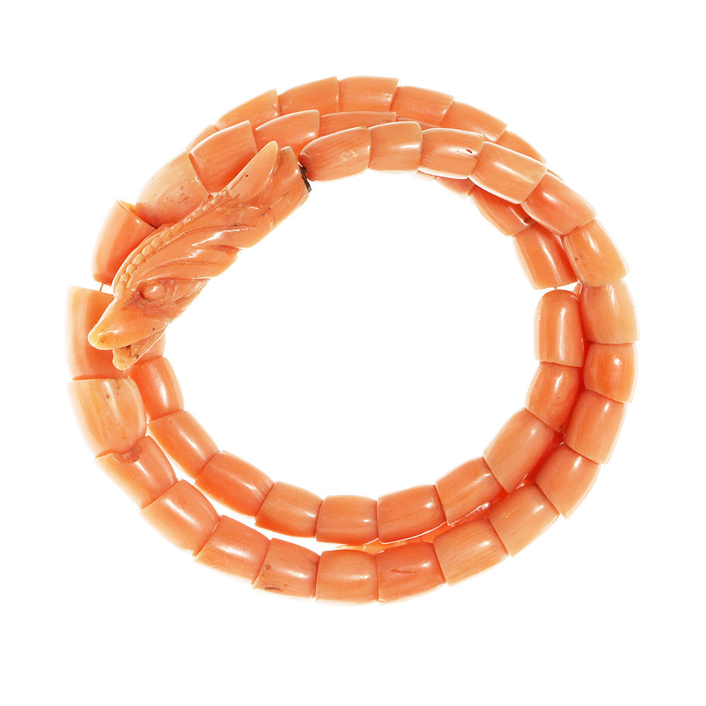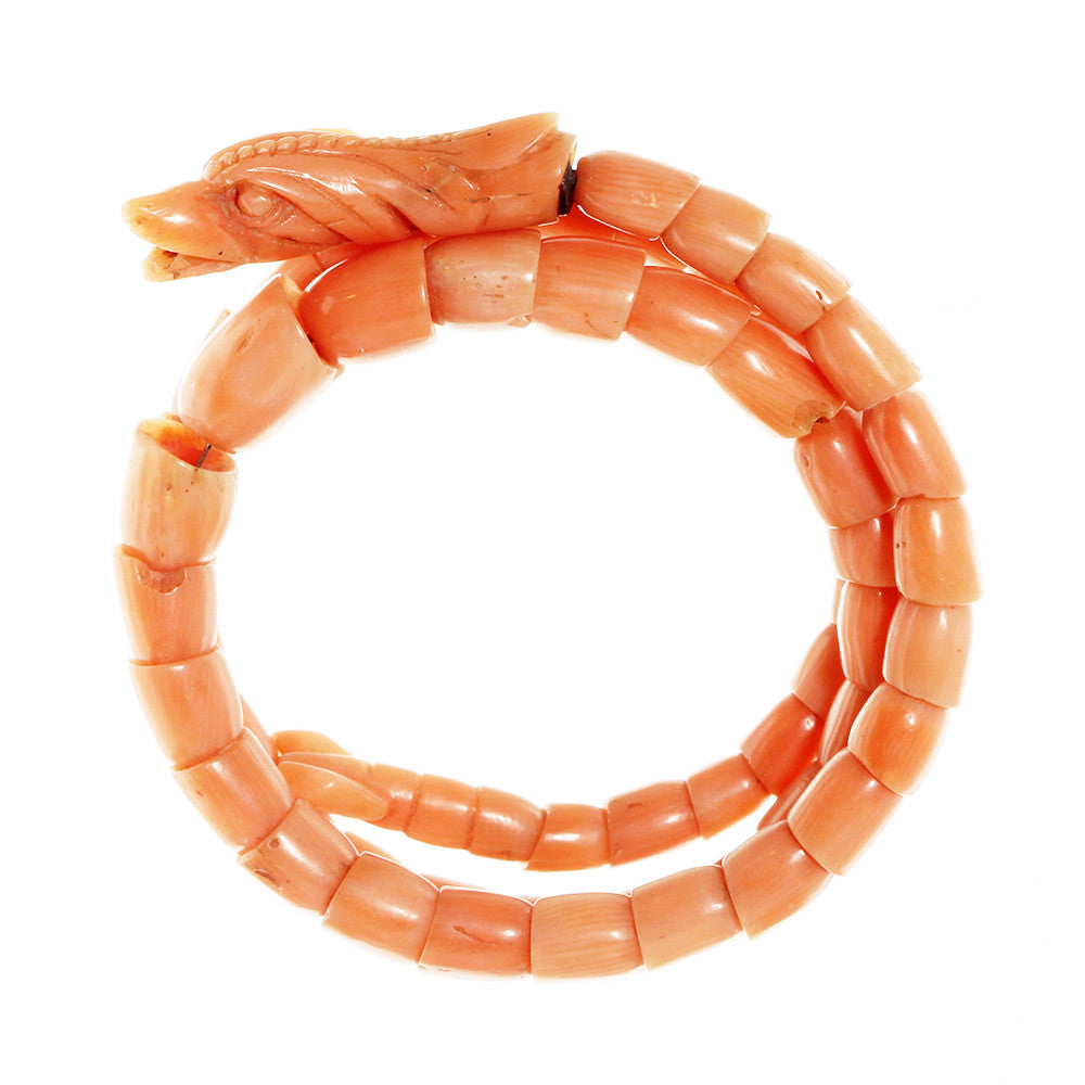 Mid-19th century carved coral bracelet. A beautifully formed Victorian era sea serpent wraps freely around the wrist, allowing for varied wrist size.